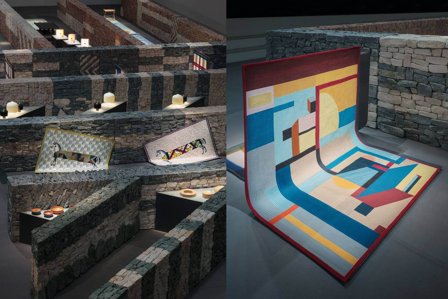В прошлом году Hermès показали башни из марокканской плитки и лабиринт из каменных стен, а теперь модный дом увлекся графическими узорами. В коллекцию вошли яркие шерстяные пледы, вазы, посуда и товары для дома.
