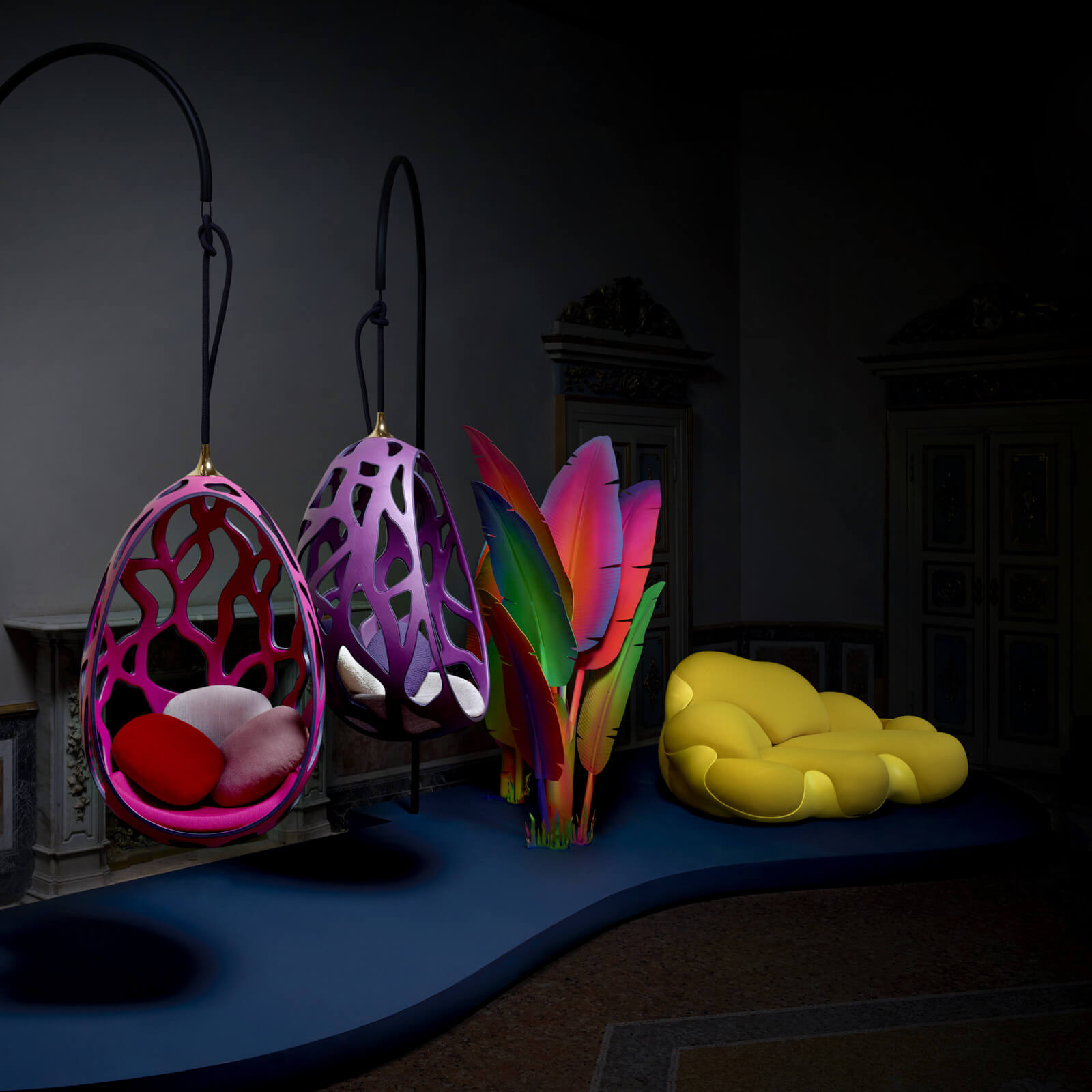 Вместе с дизайнером интерьера Сашей Бикофф и художником Энди Диксоном бренд создал линию мебели, вдохновленную рекламными кампаниями Versace 90-х годов. Самые запоминающиеся — стулья цвета металлик, ковры с принтом пальмовых листьев и очень много неона.