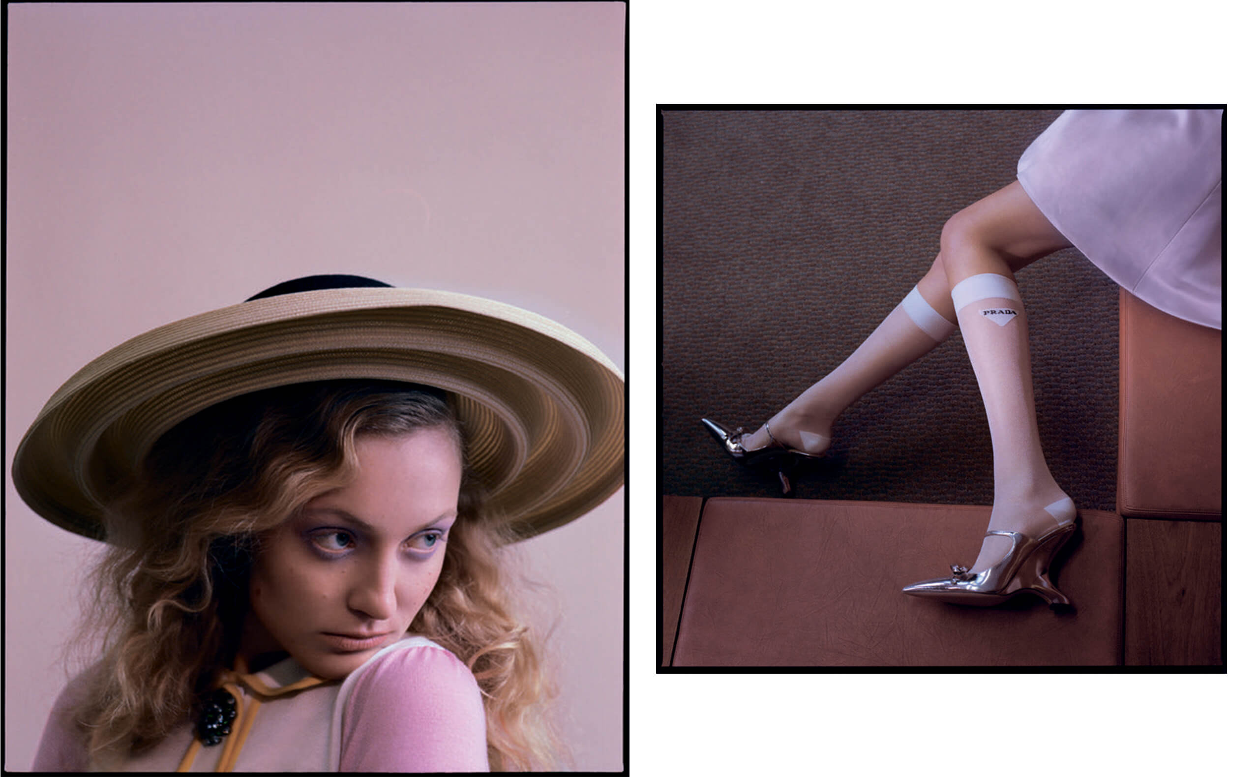 Слева: свитер N21, шляпа Eliurpi. Справа: платье, носки, туфли Prada