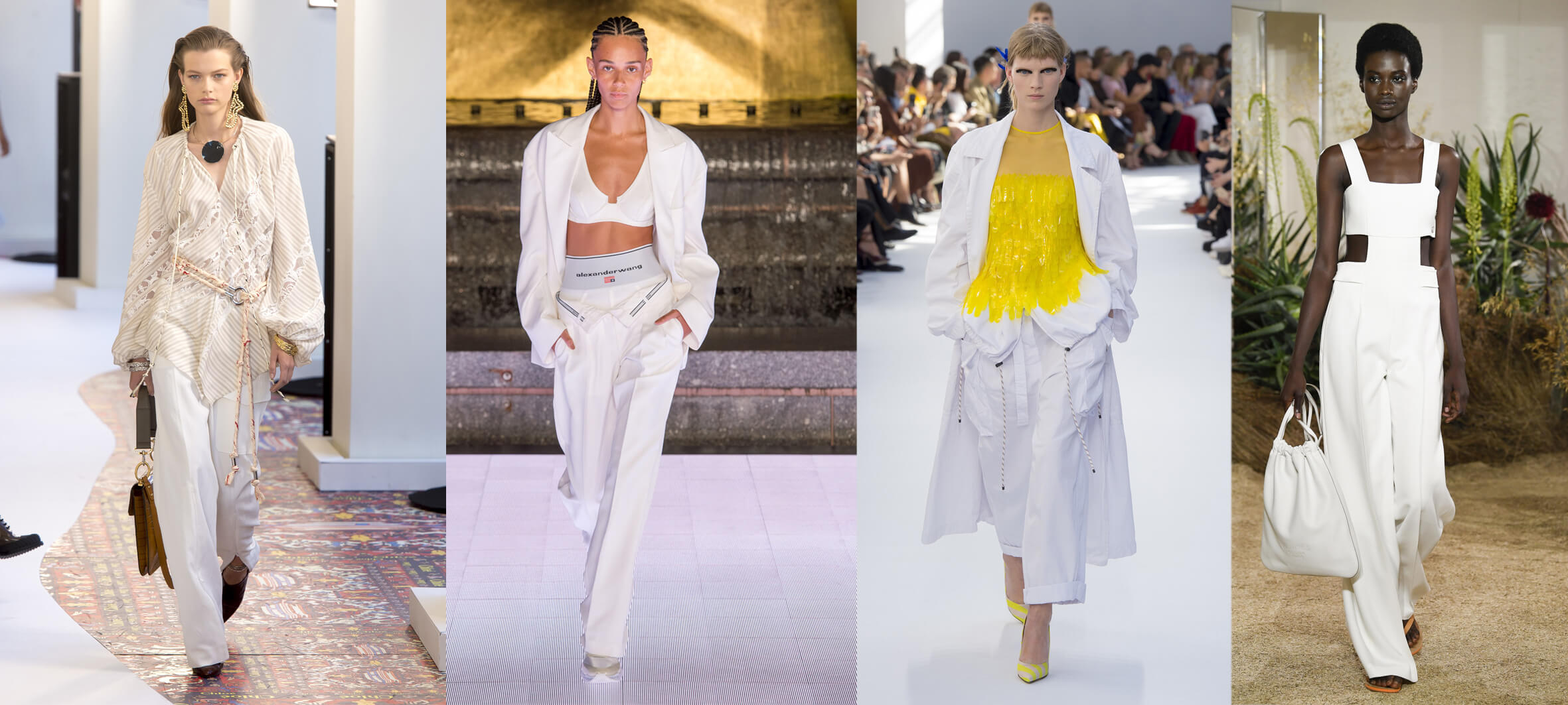 Разные и очень красивые вариации нарядов, включающих белые брюки, показали в своих коллекциях Dries Van Noten, Acne Studios и Alexander Wang. А у Balmain и Chloe получились самые роскошные образы — в духе 80-х и 70-х, но с налётом урбанистического шика.