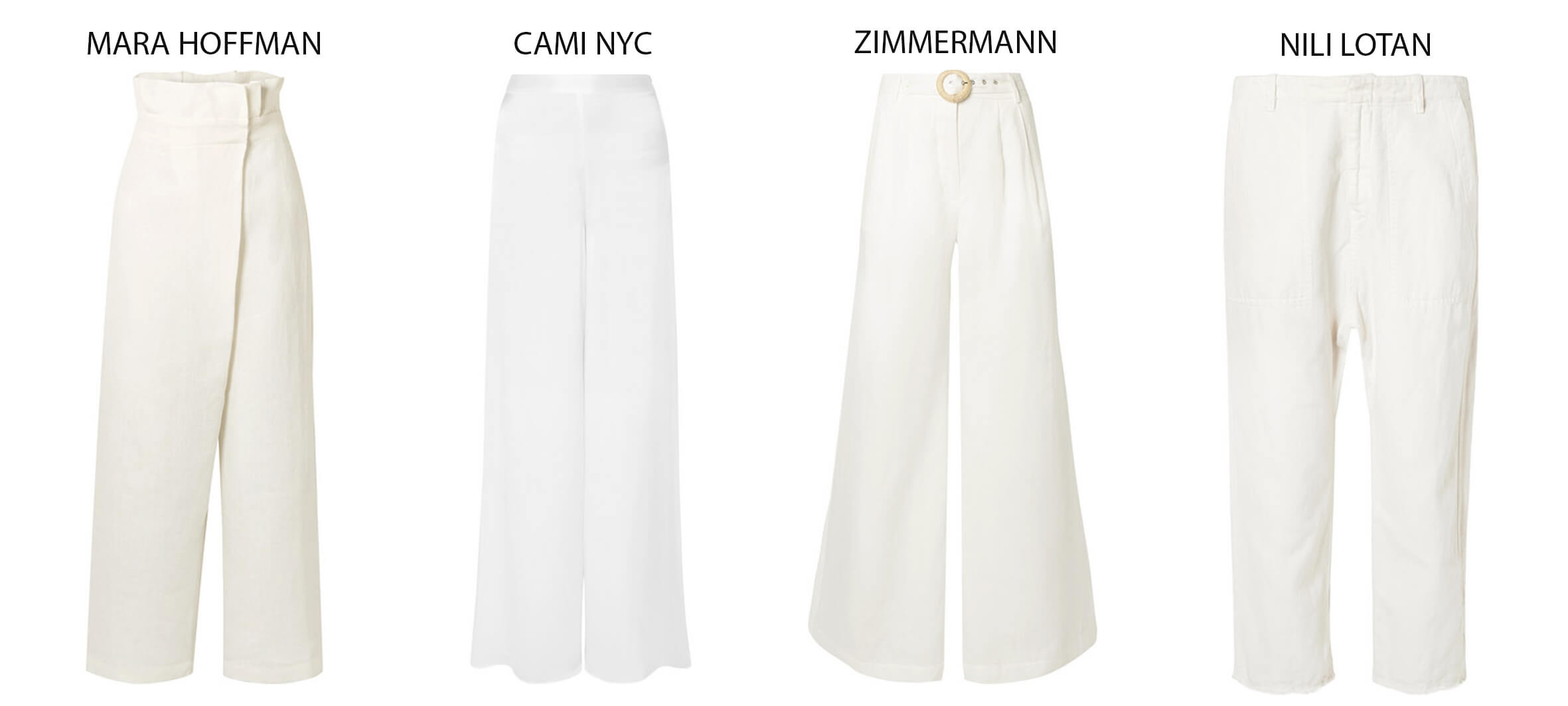 Этот предмет одежды имеет широкие возможности: белые брюки могут придать образу торжественности и лоска, а могут сделать вас настоящим модным сорванцом и богемным персонажем, если, к примеру, надеть их вместе с гавайской рубашкой или футболкой в бретонскую полоску. Когда в моду вошел спорт и различные виды отдыха — от курортных вояжей до игр в теннис под жарким солнцем, — белые брюки были неизменным атрибутом в гардеробах представителей изысканного общества. В 1970-х эта вещь приобрела статус остромодной — с расклешенными штанинами, высокой посадкой, в таких отплясывали культовые артисты, а общий вид их похож на форму моряков. Особо гламурным вариантом ношения таких брюк можно назвать тот, что использовал главный герой фильма "Фотоувеличение" Микеланджело Антониони: кремово-белые брюки фотограф Томас носил с голубой джинсовой рубашкой и черным ремнём.