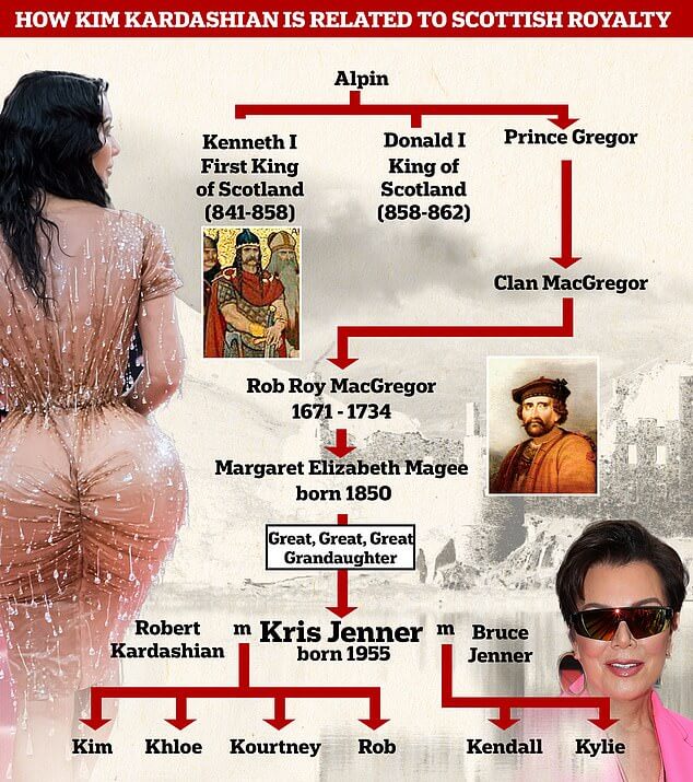 Согласно исследованиям Крейга, семейство Кардашьян – прямые потомки Роба Роя, который был известным героем-разбойником, его называют шотландским Робин Гудом. Он был потомком Грегора Макгрегора – брата первого короля шотландцев Кеннета Макальпина.