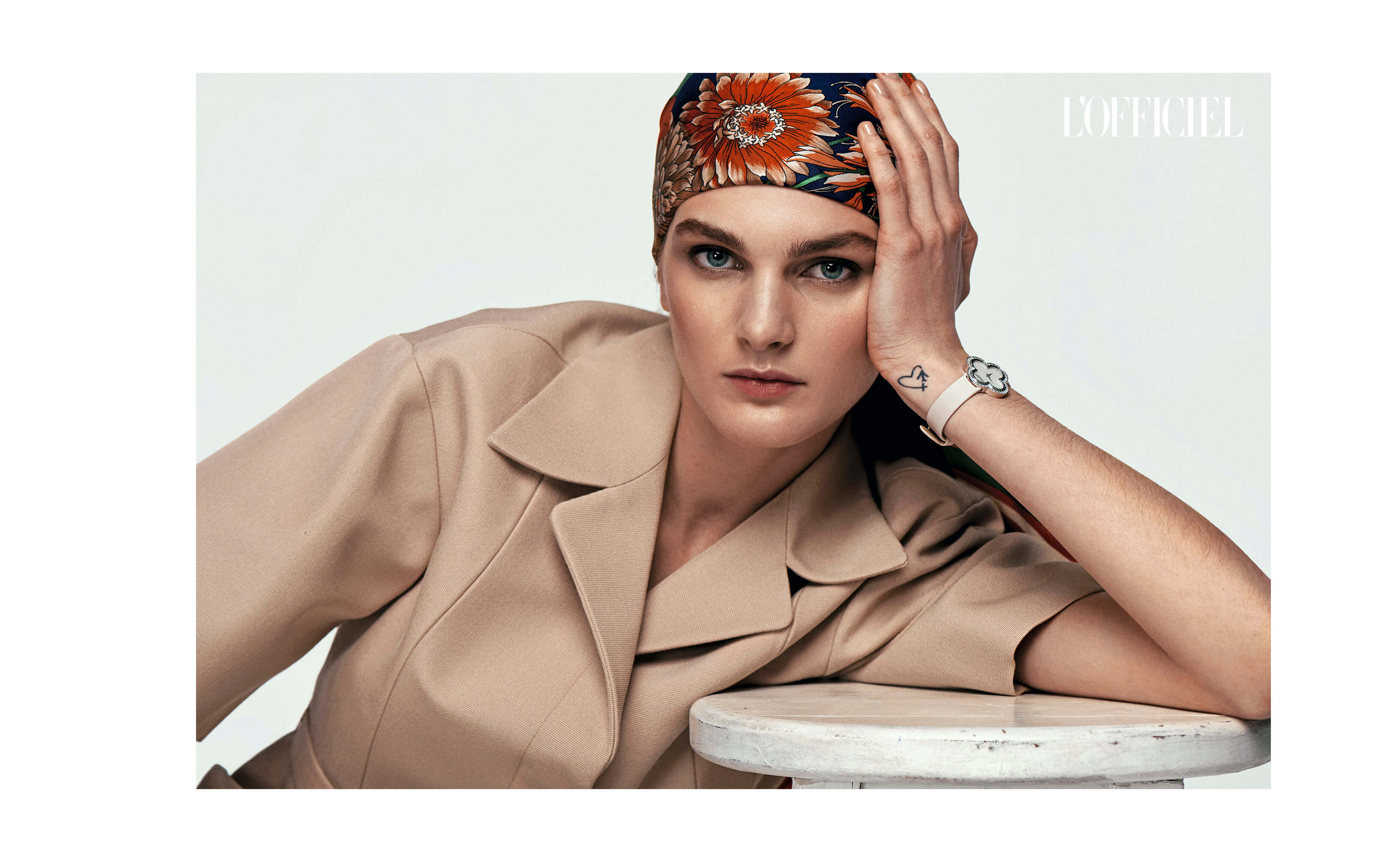 Часы Alhambra Van Cleef & Arpels, жакет Christian Dior, тюрбан Gucci