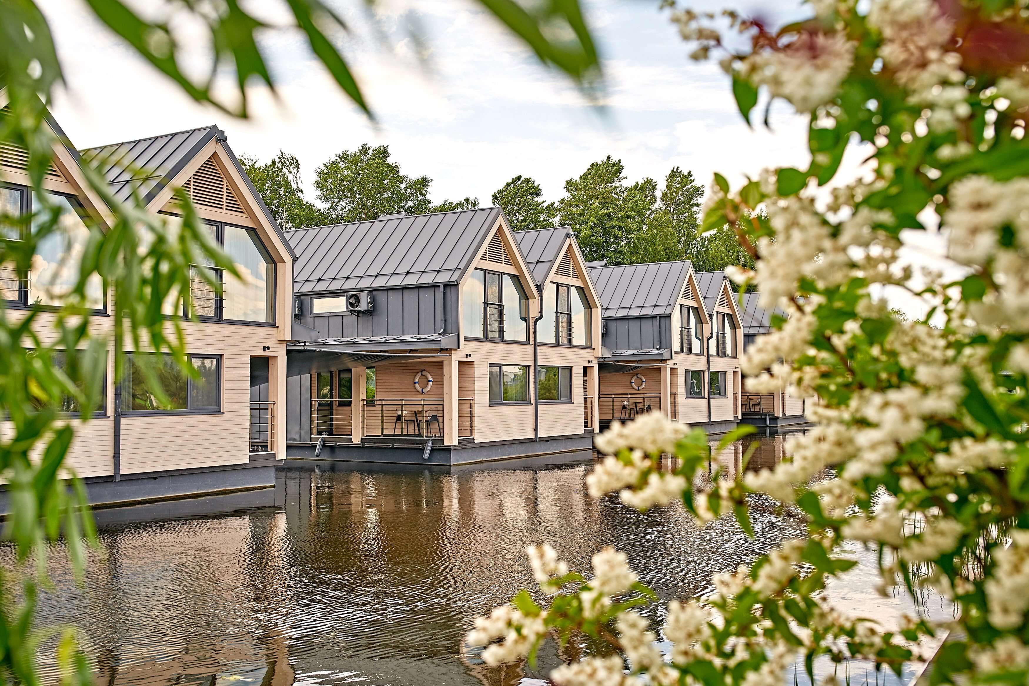 На территории площадью 8 гектаров расположены плавучие дома, аква-зона, бар и ресторан, спортивная и детская площадки, поле для мини-гольфа и два клубных озера.