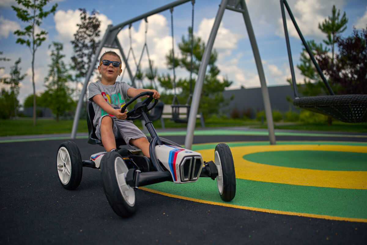 Детскую площадку построила шведская компания Hags, спортивную — голландцы Velopa. Обе оснащены водонепроницаемым и травмобезопасным покрытием, которое сводит к минимуму риск получения травм. VR-игры с дополненной реальностью и лазерный тир придутся по душе не только детям.