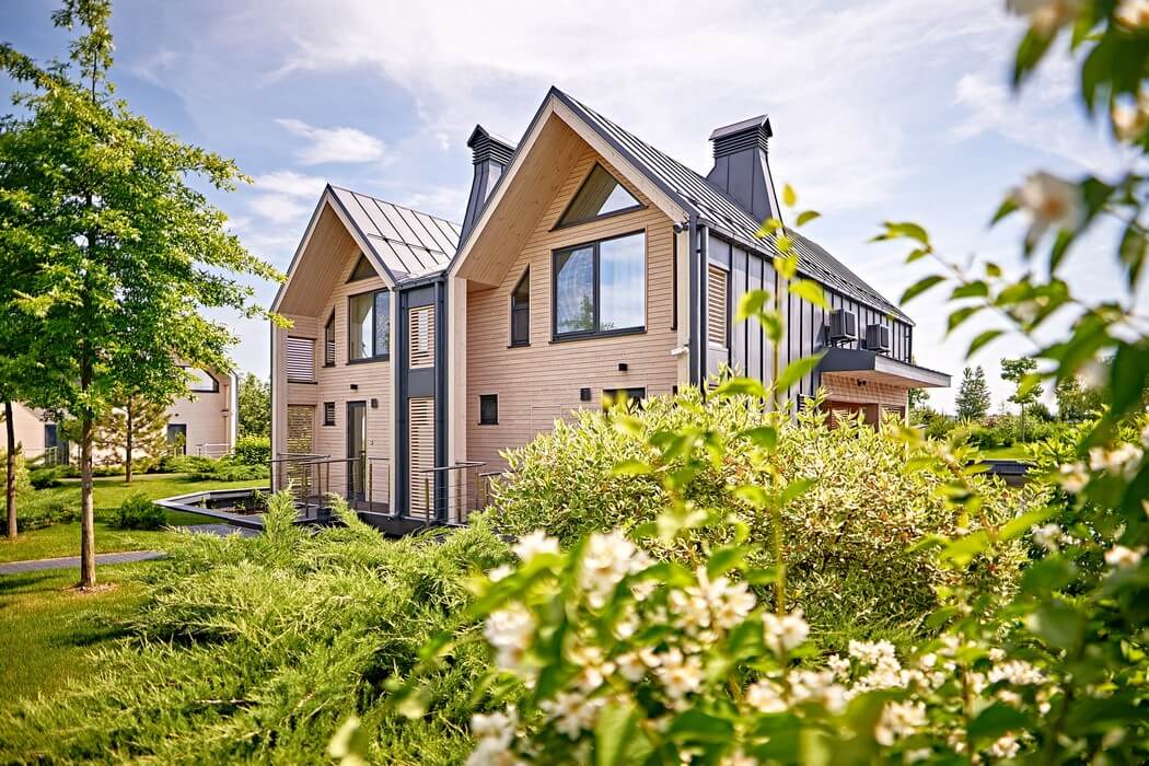 При постройке комплекса использовались природные экологически чистые материалы: дерево, металл, стекло. Плавучие дома построены в стиле функционального минимализма, в лучших традициях скандинавского дизайна. Каждый из них расположен на канале и имеет свой собственный причал, с которого можно сесть на катер и выйти на “большую воду” Каневского водохранилища.