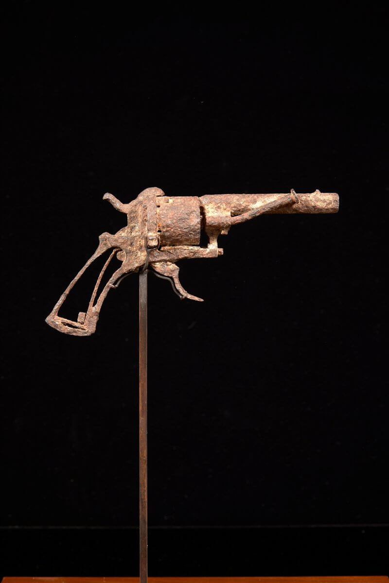 Револьвер нашел фермер в 1965 году, недалеко от города Овер-сюр-Уаз во Франции, где художник провел последние месяцы жизни. Винсент Ван Гог выстрелил себе в живот 27 июля 1890 года, он смог добраться до отеля, где его осмотрел доктор. Спустя 2 дня художник умер со словами “печаль будет длиться вечно”. Существует теория, что его могли случайно подстрелить.