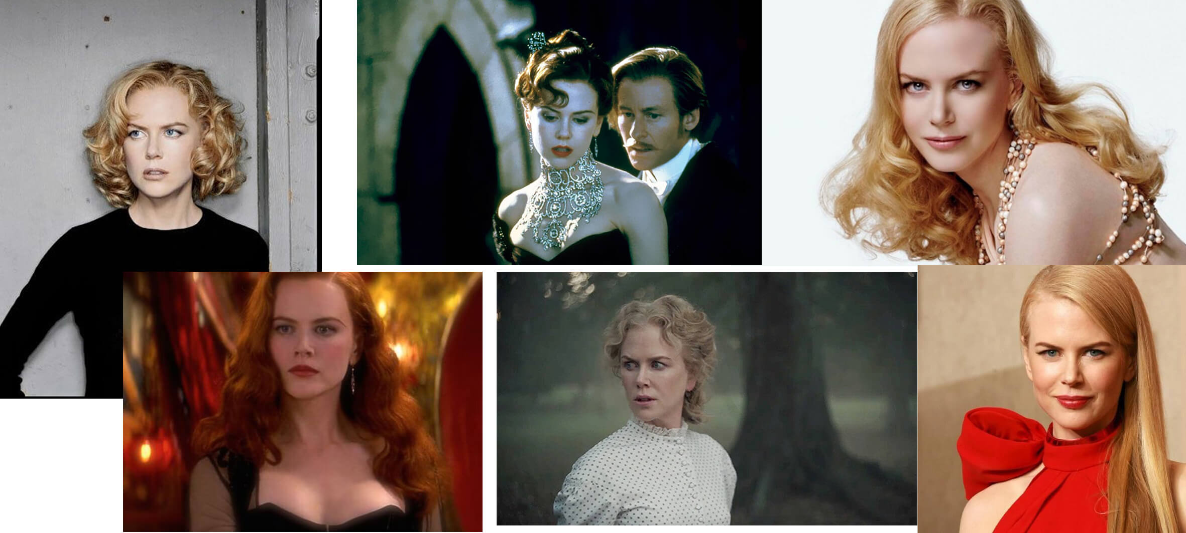 Фактура австрало-американской красавицы Кидман запоминается с первого взгляда - немного хищный взлёт бровей и ясный, пронзительный взгляд, утончённость в сочетании с какой-то знакомой теплотой, и, знаменитая волна золотых волос. Именно этот нестандартный и насыщенный типаж легко свести как к пасторальности, наподобие роли актрисы в "Доггвиле" Ларса Фон Триера, так и к аристократической возвышенности, как в фильме "Портрет леди" 1996 года. Глубина Кидман позволяет воплотить самые разноплановые типажи и характеры - чувственную артистку кабаре в "Мулен Руж", зловещую домохозяйку в "Степфордских жёнах" или властную хозяйку женского пансионата в "Роковом искушении".