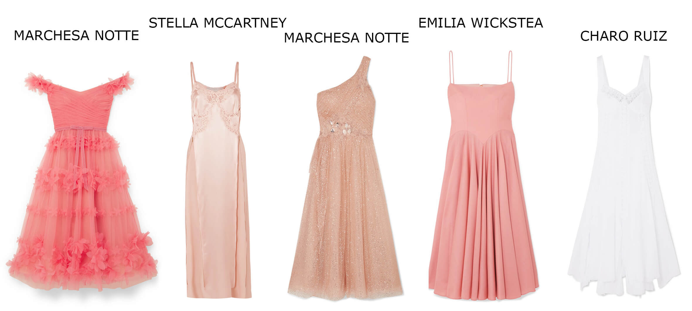Для вечернего выхода подходят более драматичные наряды в духе Simone Rocha и Marchesa Notte, которые будут гармонично дополнять ювелирные аксессуары. Эффектным ходом будет надеть босоножки в тон платью.