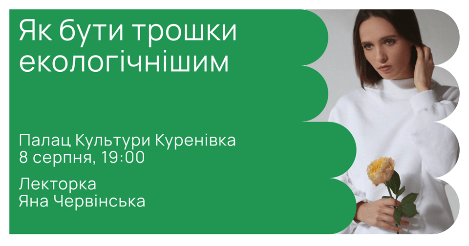 Дворец культуры “Куреневка” проводит большую лекцию для всех, кто только становится на путь экологичности. О том, как отказаться от пакетов и лишнего пластика, расскажут главные эксперты в этом вопросе: основательница организации "Україна без сміття" Евгения Аратовская, Яна Червинская из Sustainable Fashion Pad, Лера Непеина из благотворительного магазина "Ласка" и многие другие.