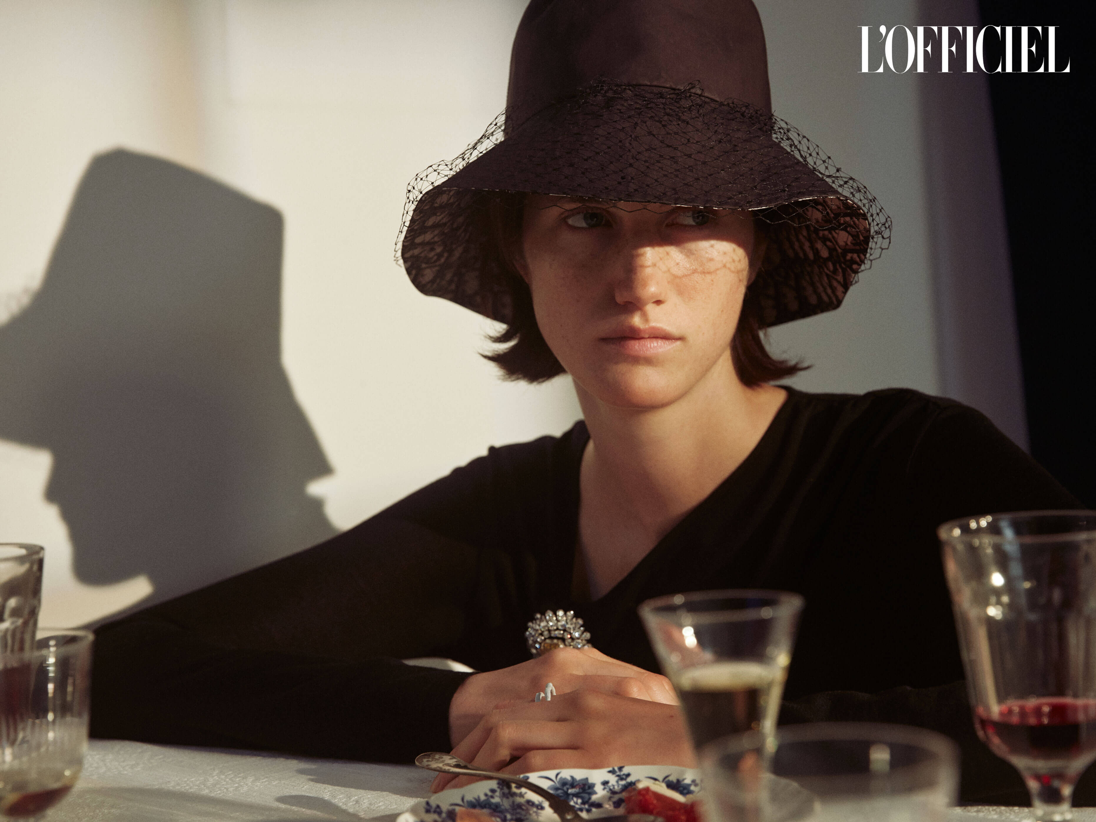 Кофта Emanuel Ungaro, шляпа Christian Dior, кольцо Acne Studios