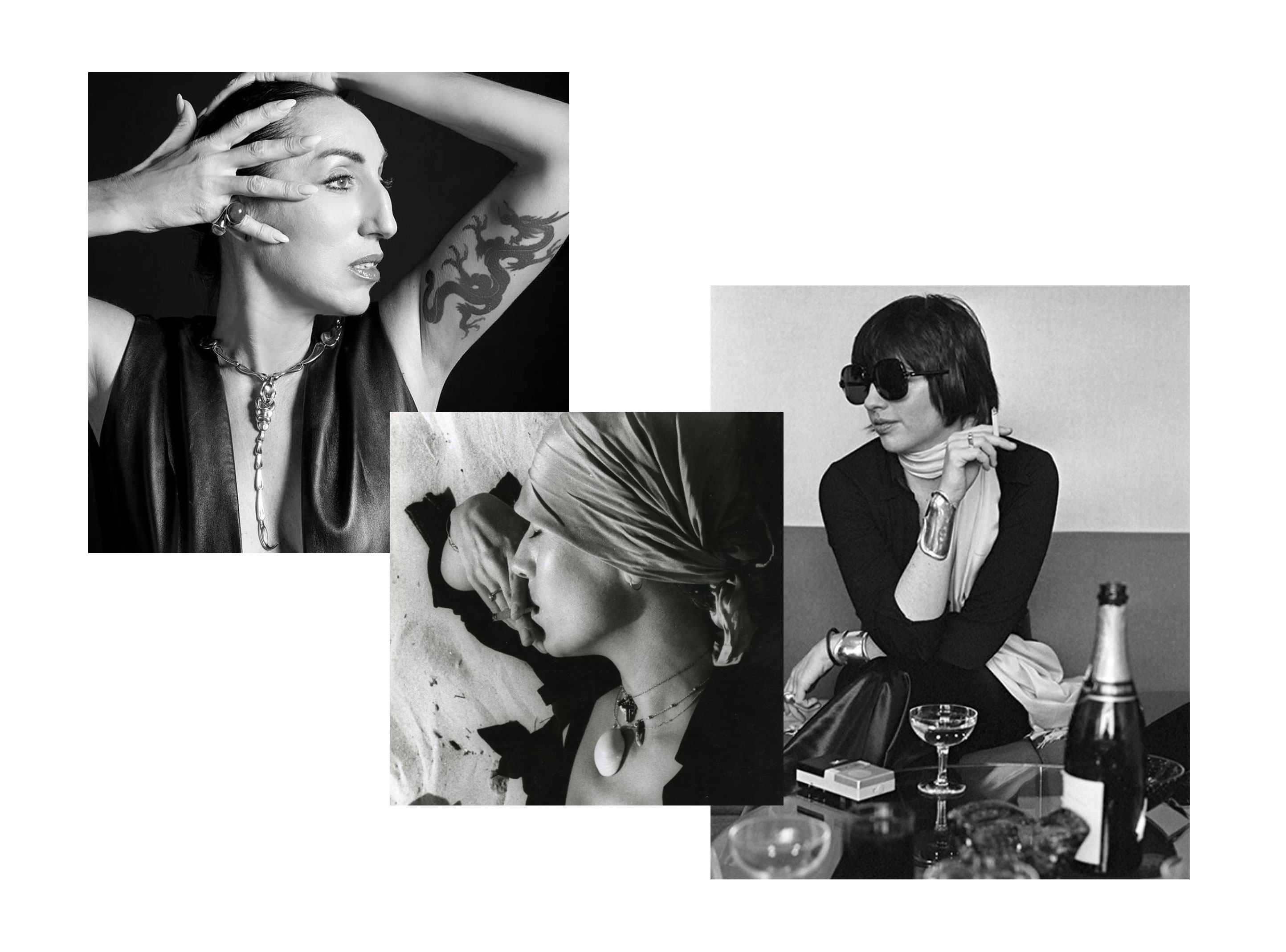 Зліва направо: акторка Россі де Пальма в прикрасах Ельзи Перетті; Ельза Перетті на острові Ібіса; Лайза Міннеллі в прикрасах Ельзи Перетті