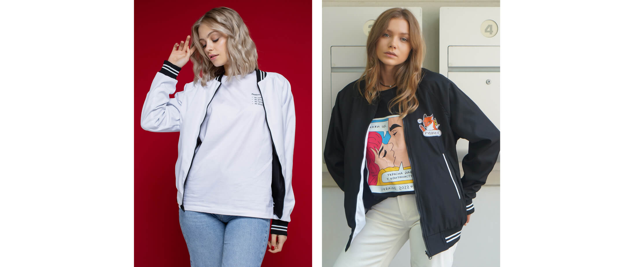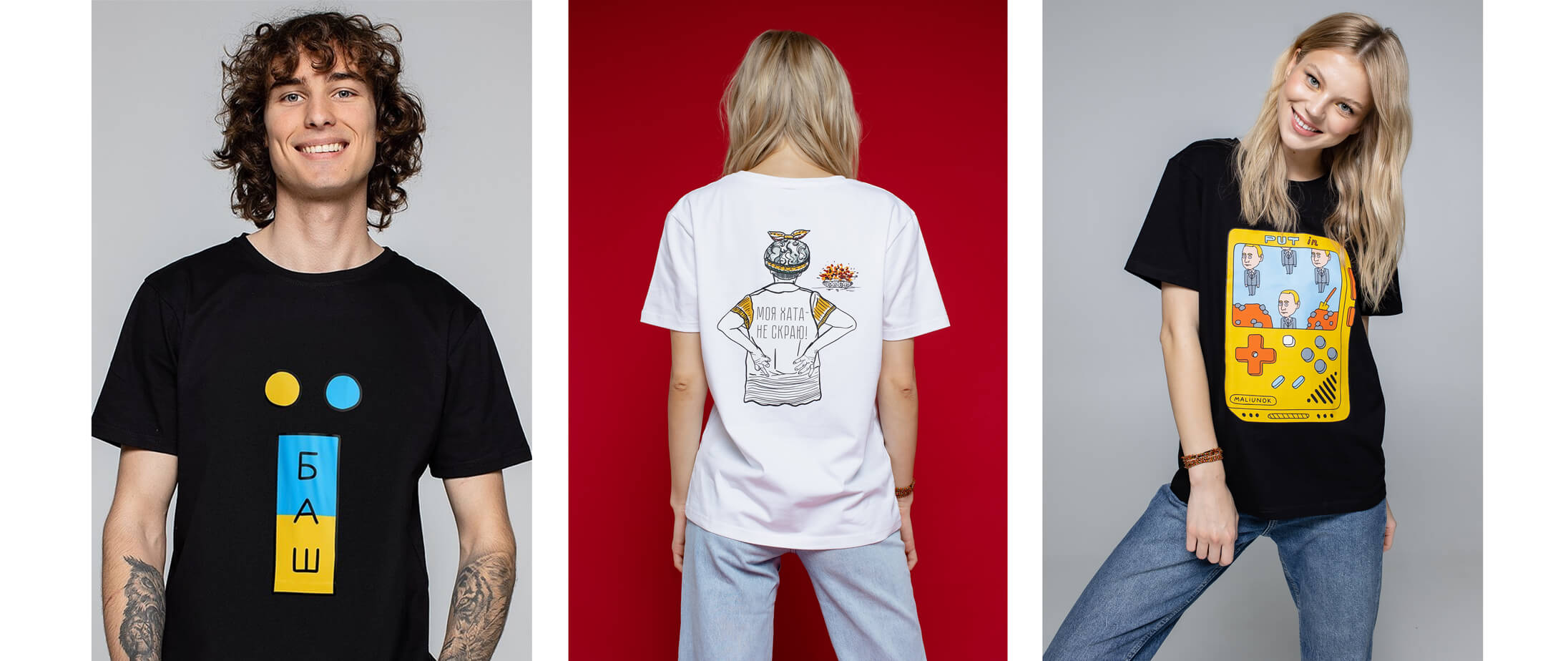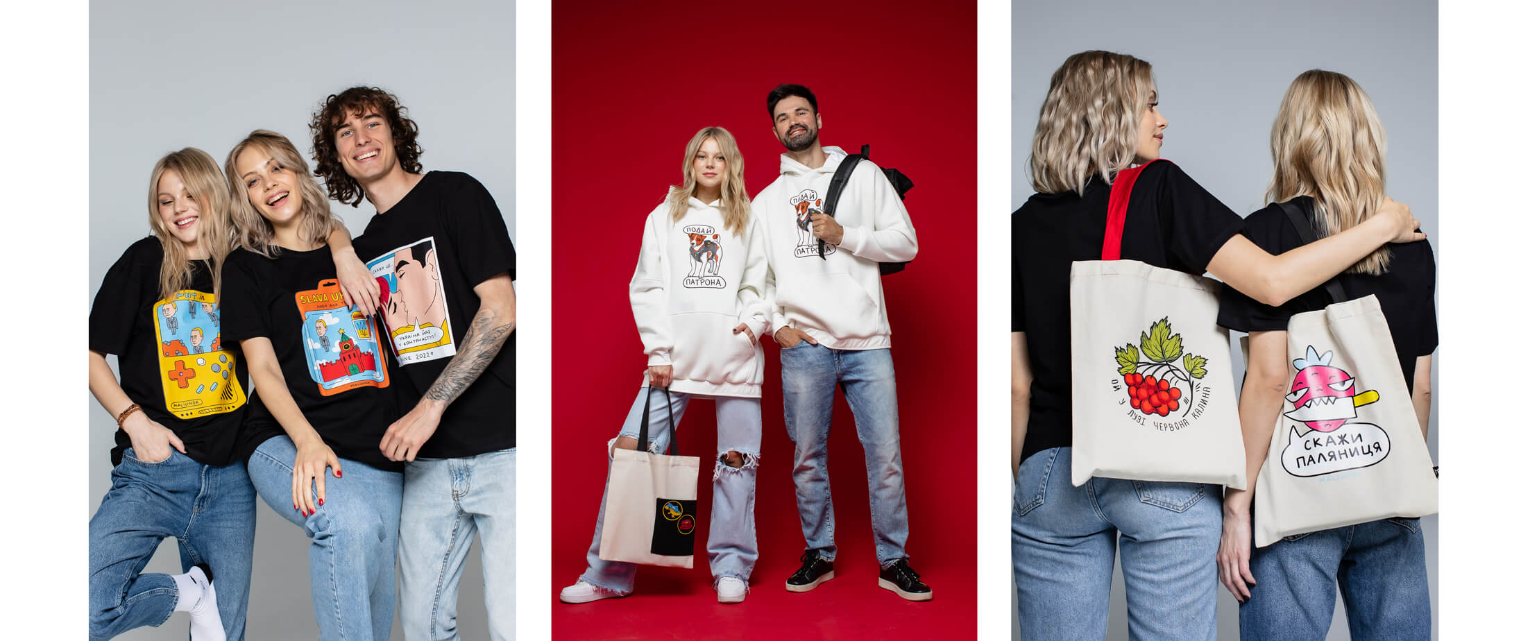 Серед 23 дизайнів, доступних зараз у колекції, є малюнки на будь-який смак: від зворушливого «Люби Україну» до відверто зухвалого «Їб*ш». Тож можна підібрати лук до різних ситуацій, чи то зустріч із друзями, чи побачення, чи робочий ланч.