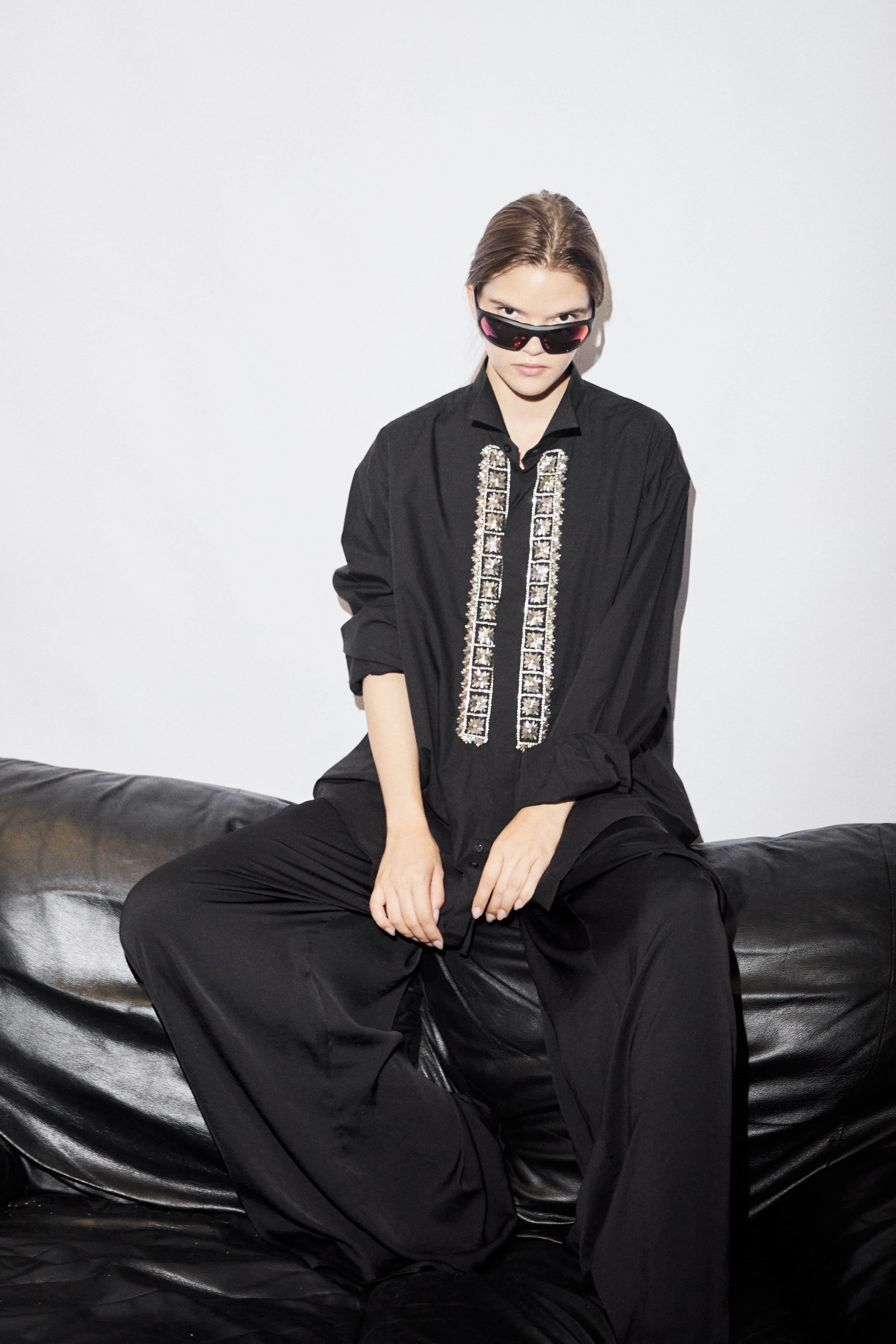 У дропі “ЕТНО” вишивку виконано на білих і чорних сорочках. У новій колекції дизайнер поєднав кристали і стеклярус срібного, золотого і червоного кольорів. Уся вишивка виконується вручну, кількість камінців на деяких з них сягає 800 штук.