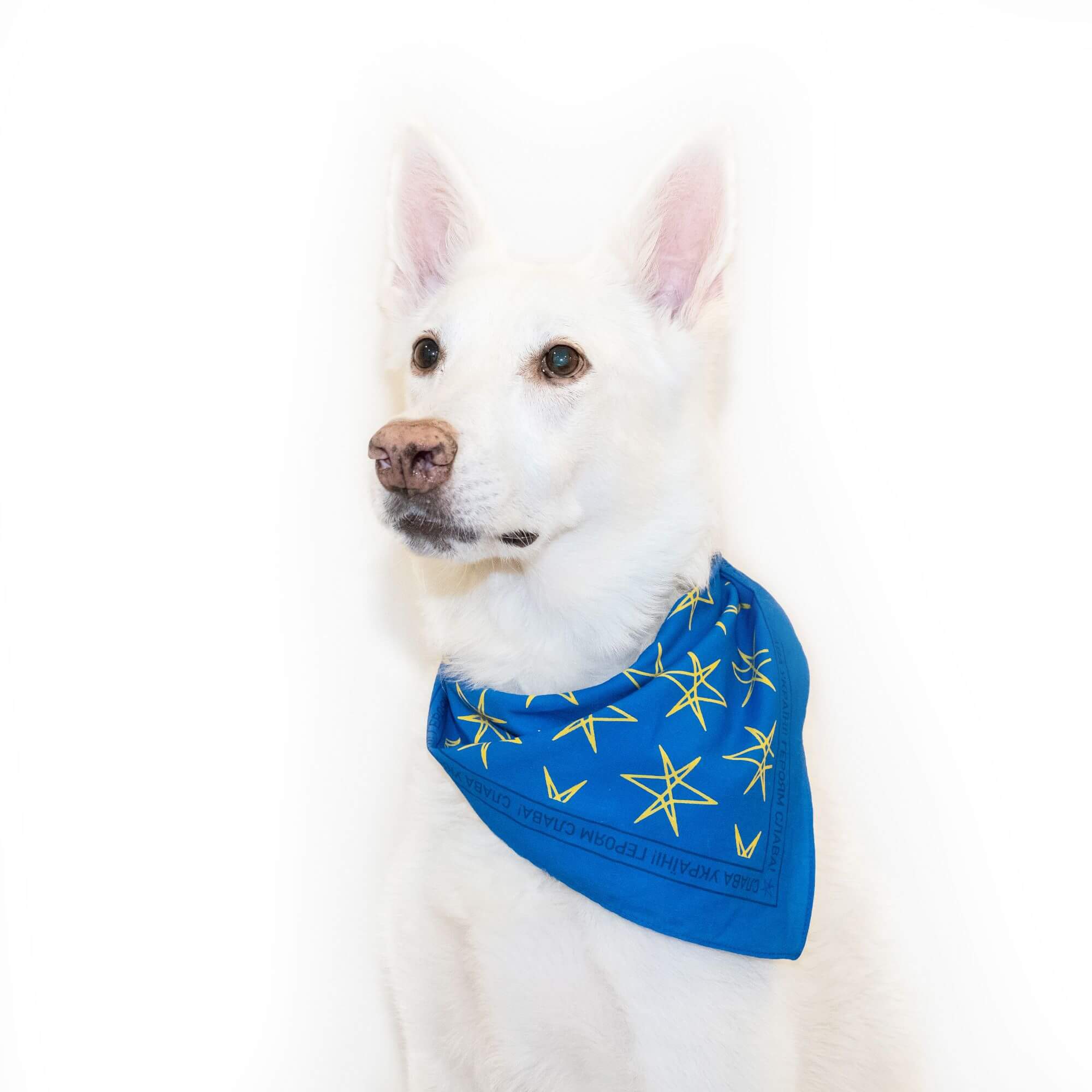 Бандани представлені в синьому кольорі з жовтим шестигранним візерунком, оточеним рамкою з написів “Слава Україні! Героям слава!”. Усі кошти від прибутку надійдуть київському притулку для котів Cats on Mars, який рятує тварин з гарячих точок України. Тільки за цю весну керівники притулку допомогли понад 100 котам, які постраждали в містах Київської області.