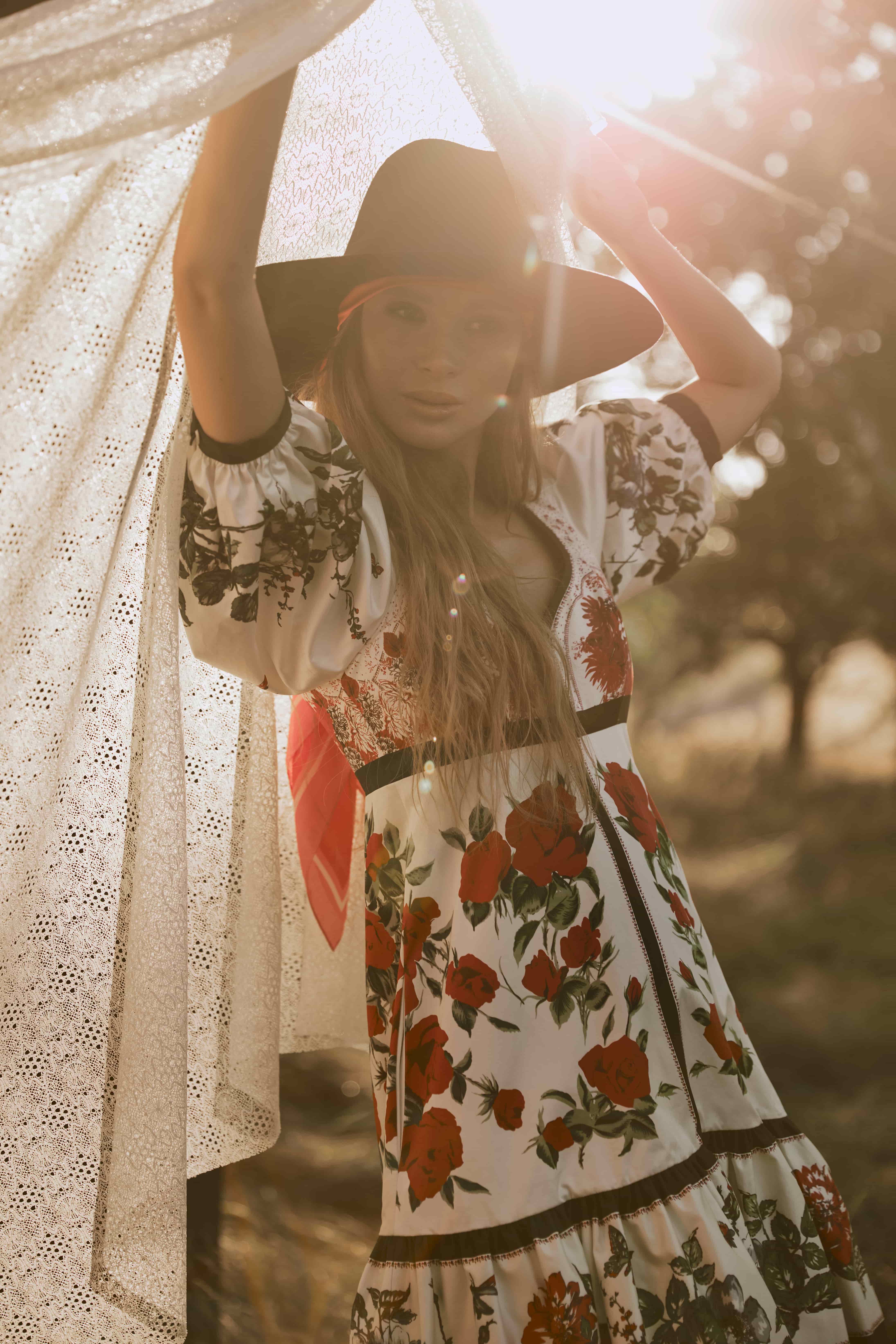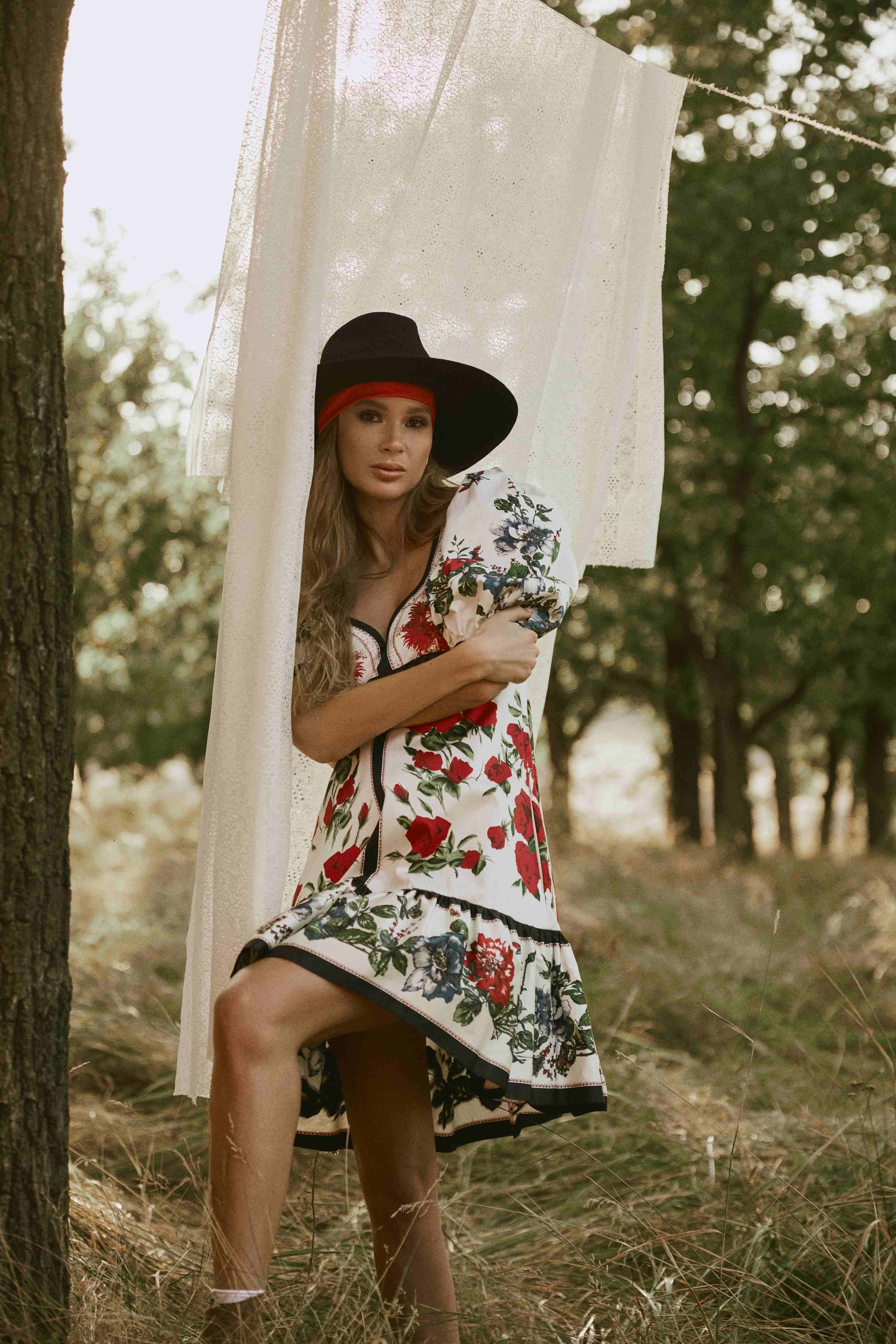 Капелюх J.V accessories, сукня Alexander McQueen, шкарпетки Calzedonia, козаки Celine, хустка та сережки — власність стиліста