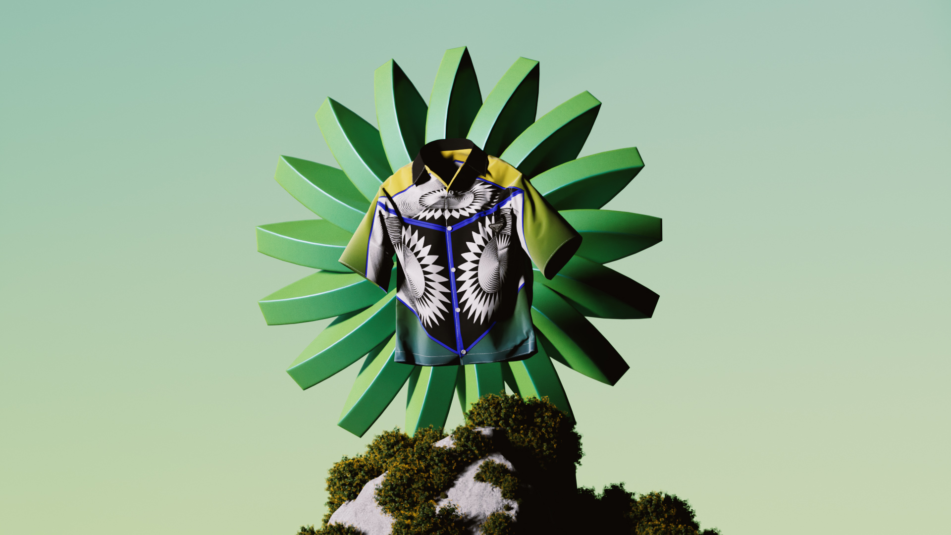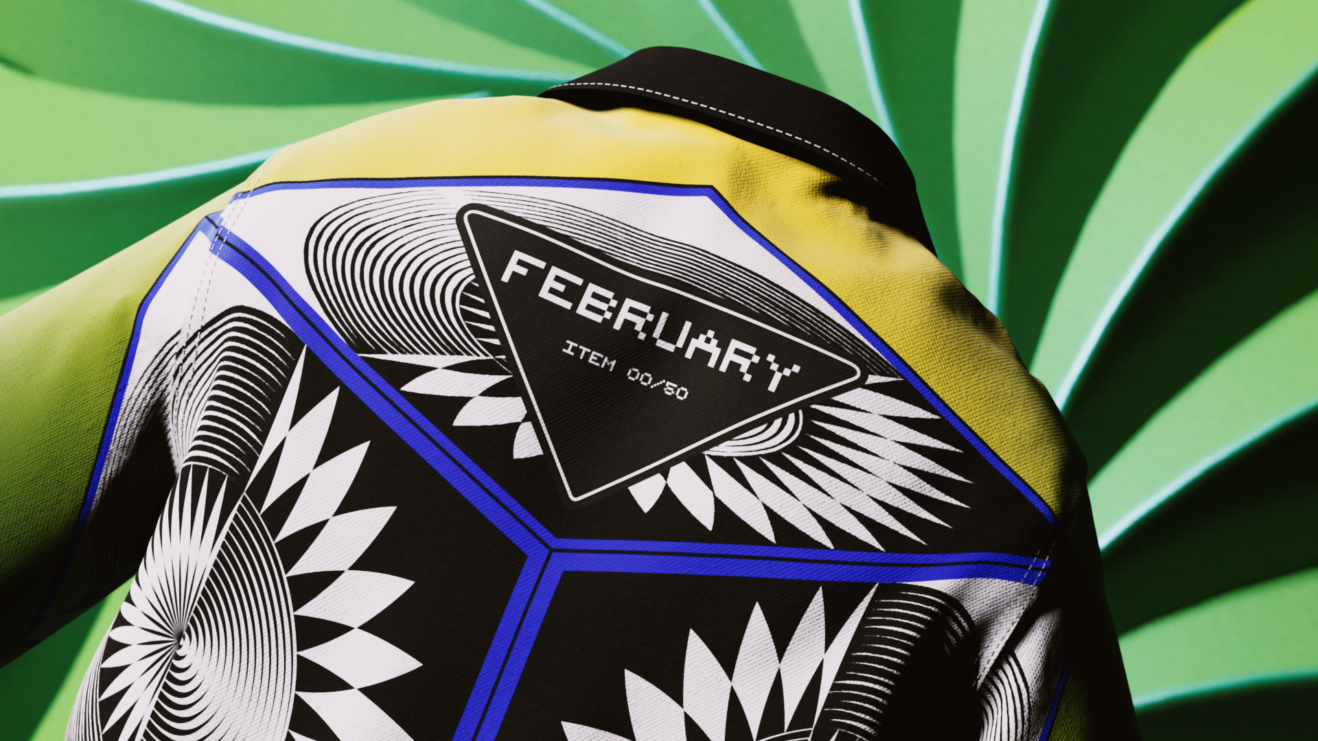 Сорочка з попліну з емальованим трикутним логотипом Prada з написом "FEBRUARY" на спині. До кожної сорочки додається власний NFT, який слугує запрошенням приєднатися до ексклюзивної спільноти Prada - Crypted NFT.
