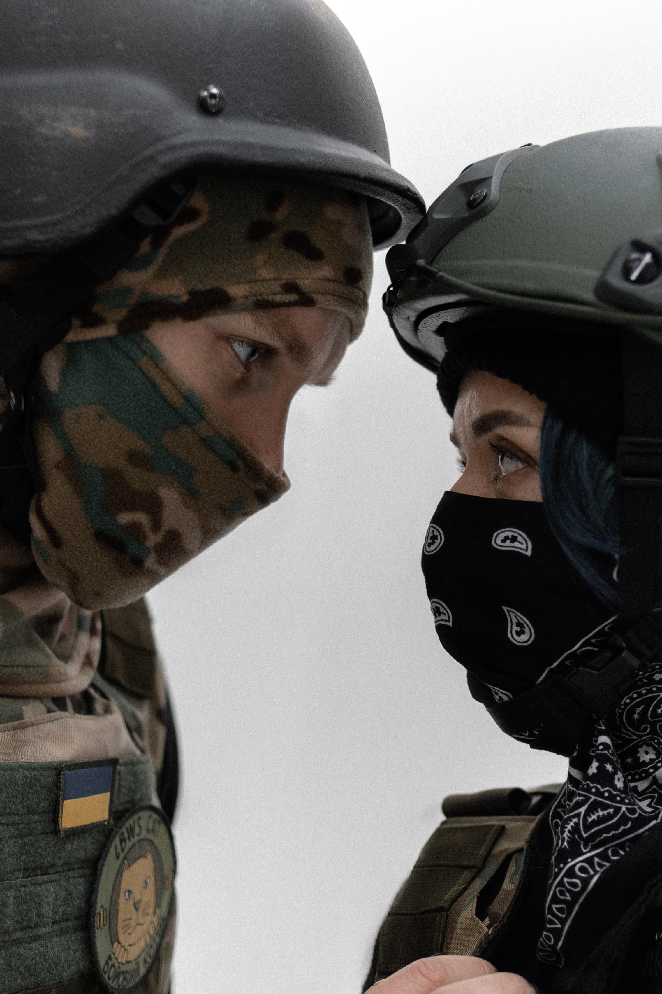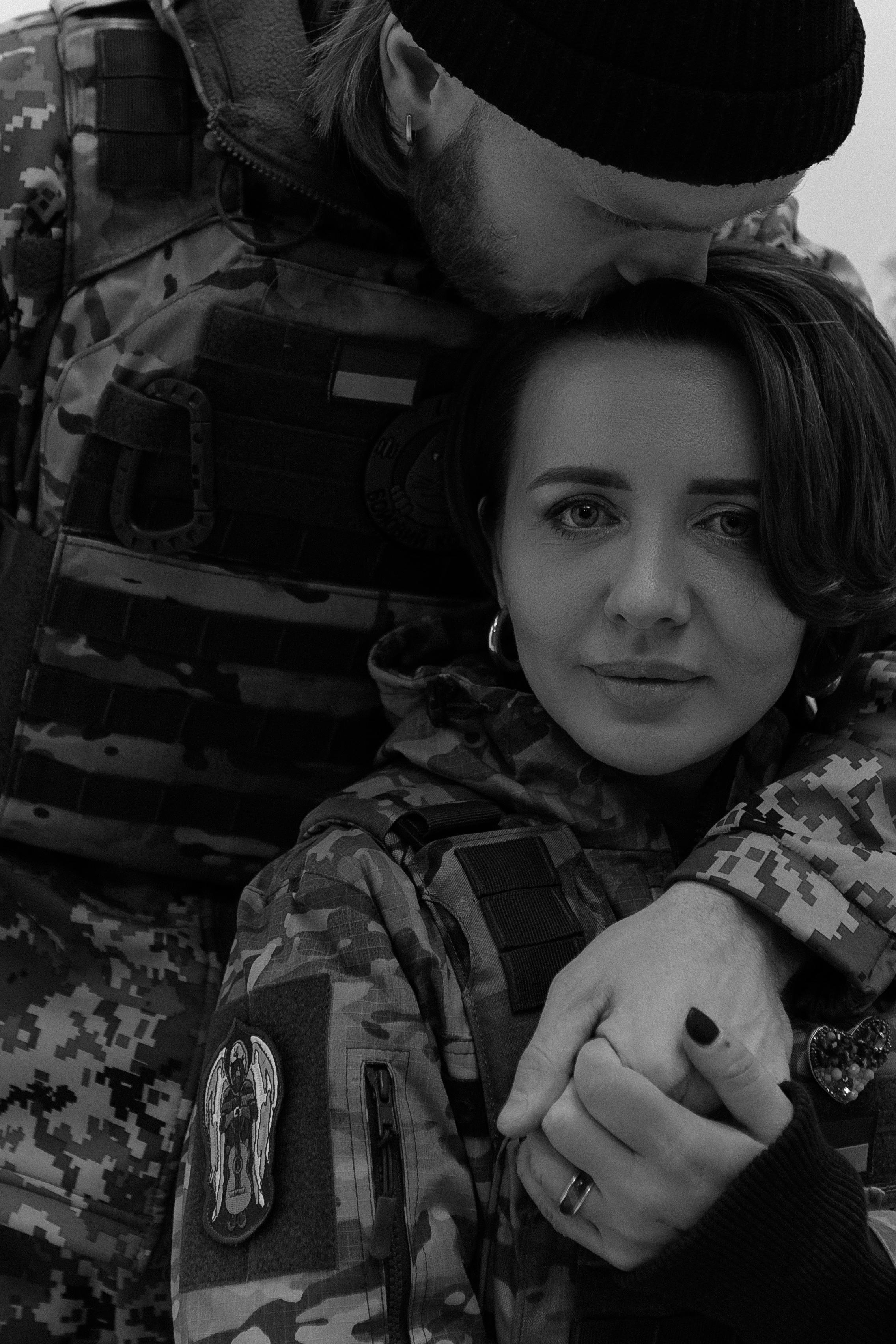 17 листопада Саша був також тут у військовій частині, в Гостомелі, де ми служимо. І ми пішли в цей день разом на ту фотосесію для двох, де він і зробив мені пропозицію вийти за нього заміж. Ми одружились 27 грудня 2022 року.