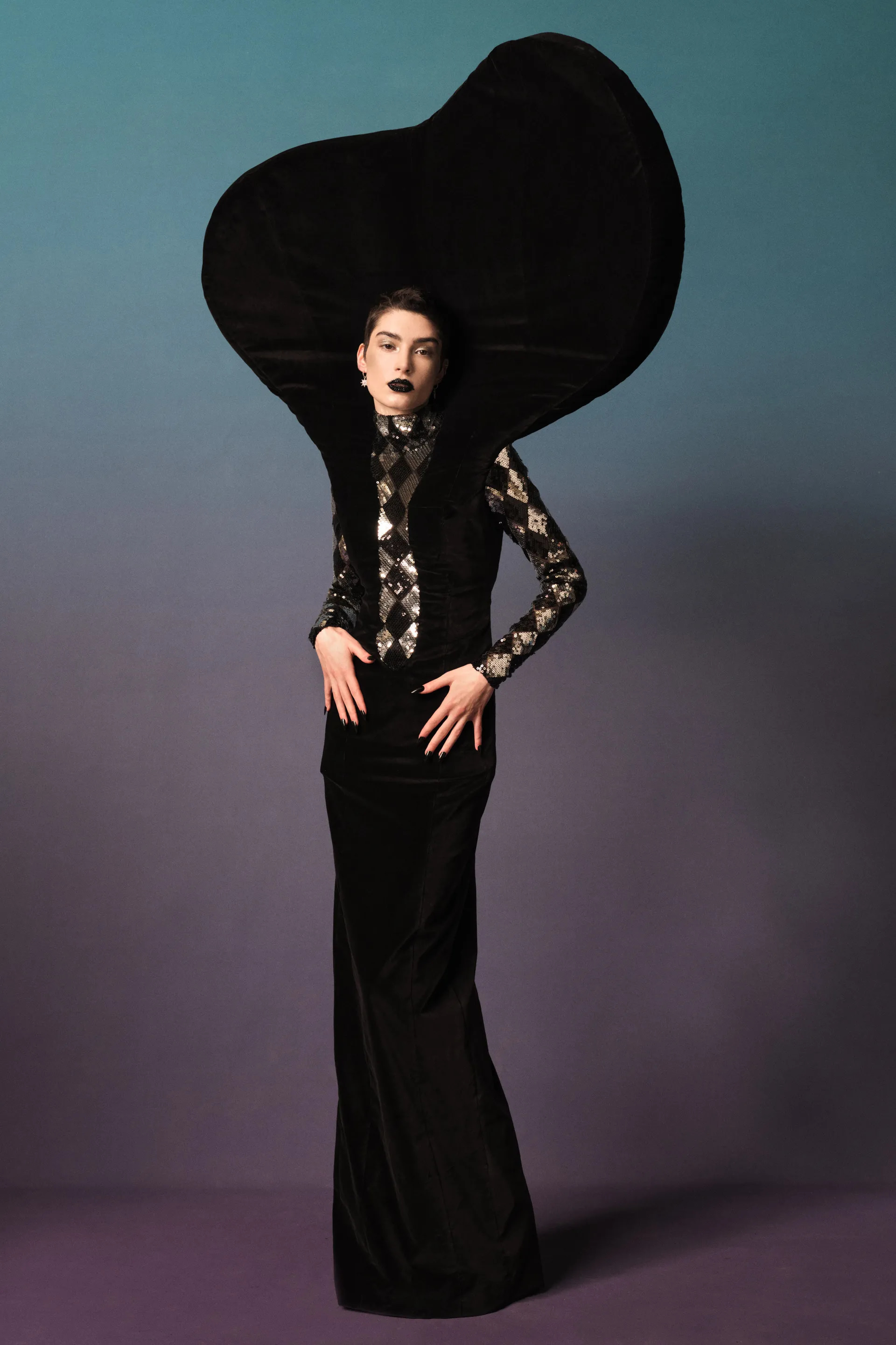 Сукні з об’ємними бустьє, фактурні головні убори, фіштейл юбки — усе це як ода до кутюру через призму скульптурності кожного окремого образу. Та, безумовно, як втілений життя референс “королев краси” з їхньою яскравістю і впевненістю в собі.