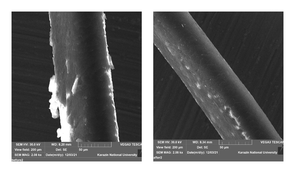 Спочатку на апараті зафіксували чисту вію без фарбування, а потім – її ж після занурення в сироватку та вбирання. Експеримент показав, що навіть після одноразового нанесення сироватки кортекс волоса став набагато щільнішим. Також помітно покращився і стан найбільш ушкоджених зон.