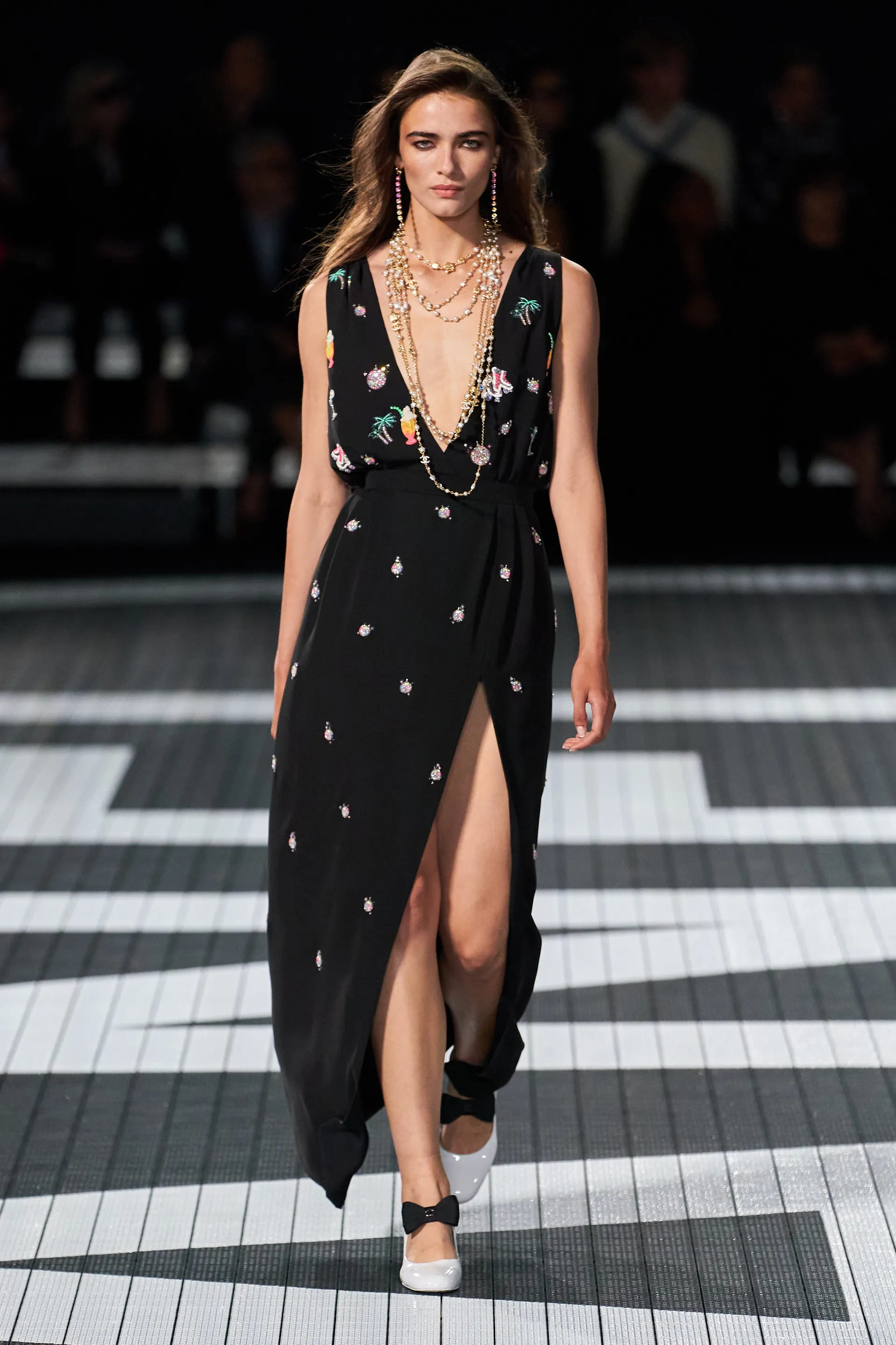 Через 16 років після дебютного показу Chanel в Лос-Анджелесі Віржині Віар повернулася в Голлівуд, аби представити шоу круїзної колекції – 2024. Захід пройшов в історичній студії Paramount. Всередині бренд створив невластиві собі декорації: неонові вивіски, фургони з вуличною їжею, стенди з роликовими ковзанами та бар.