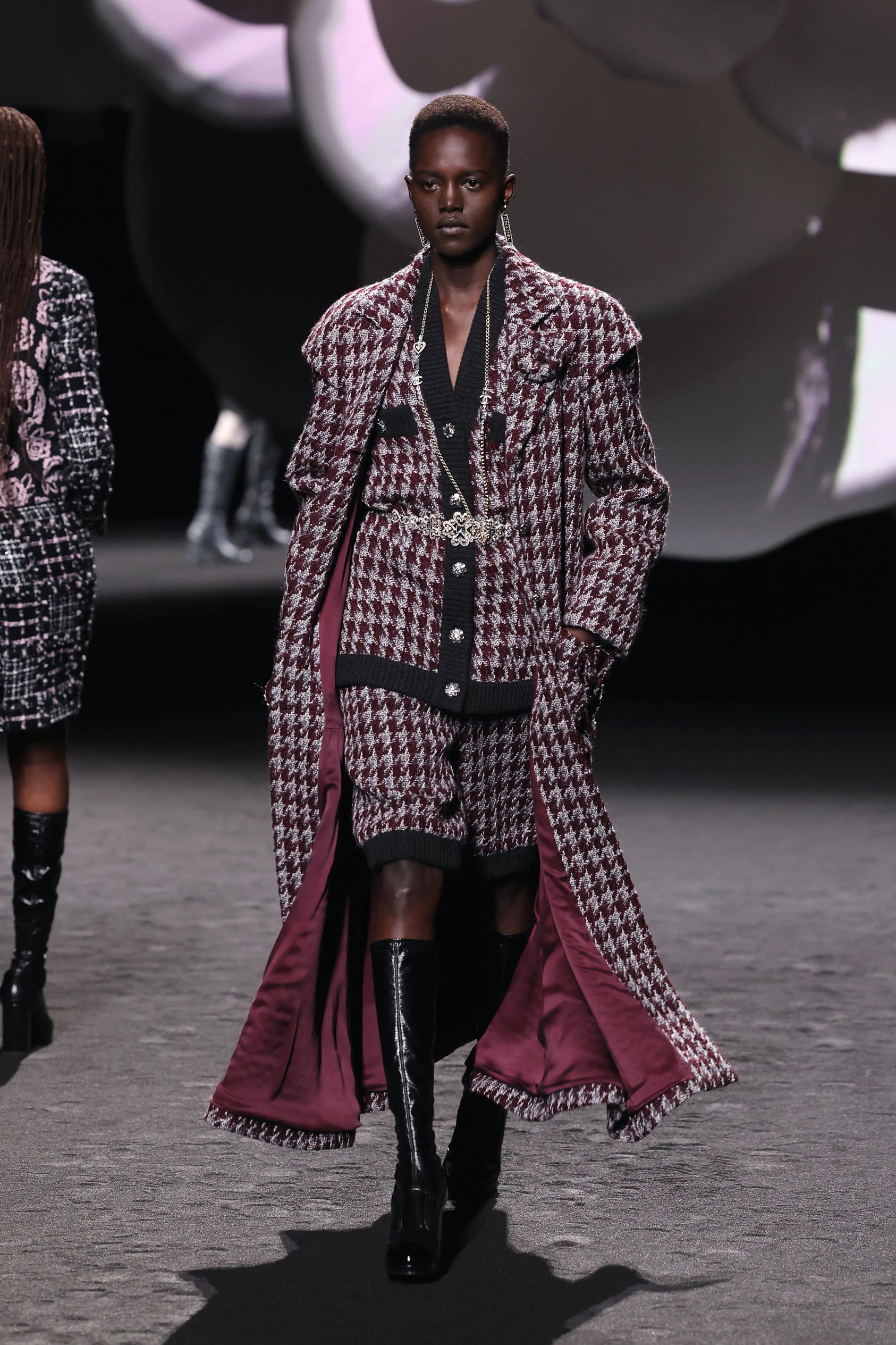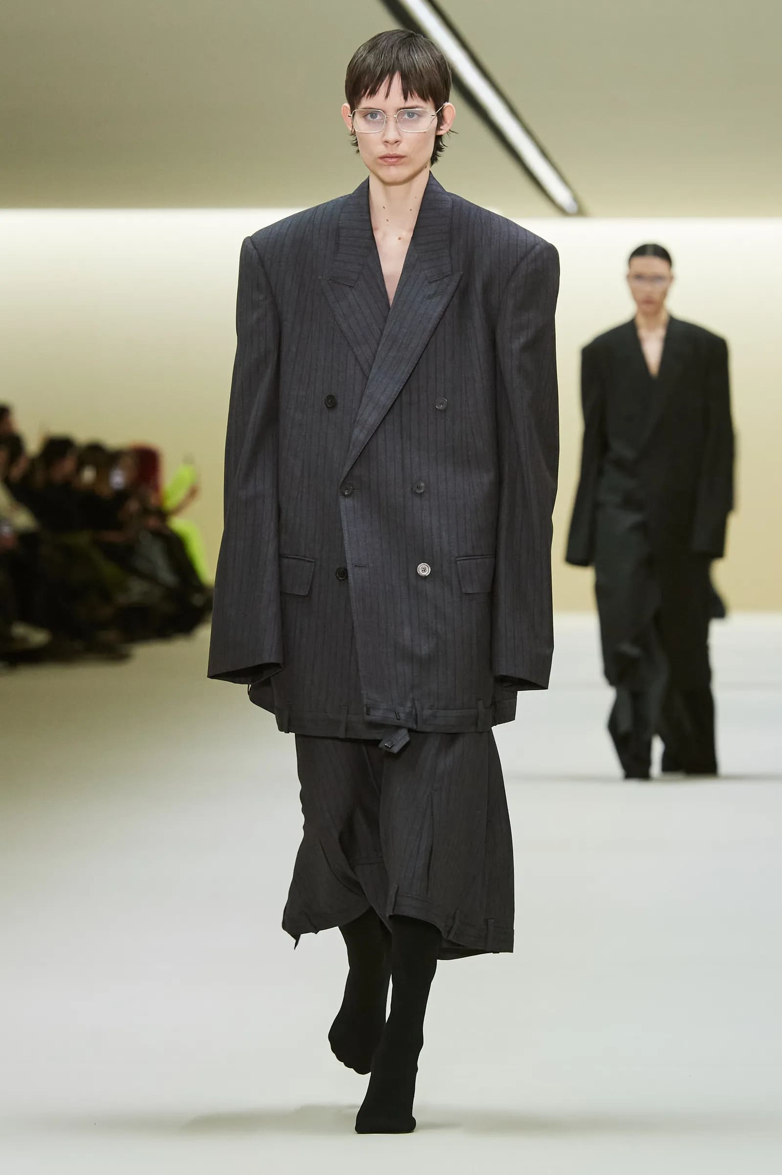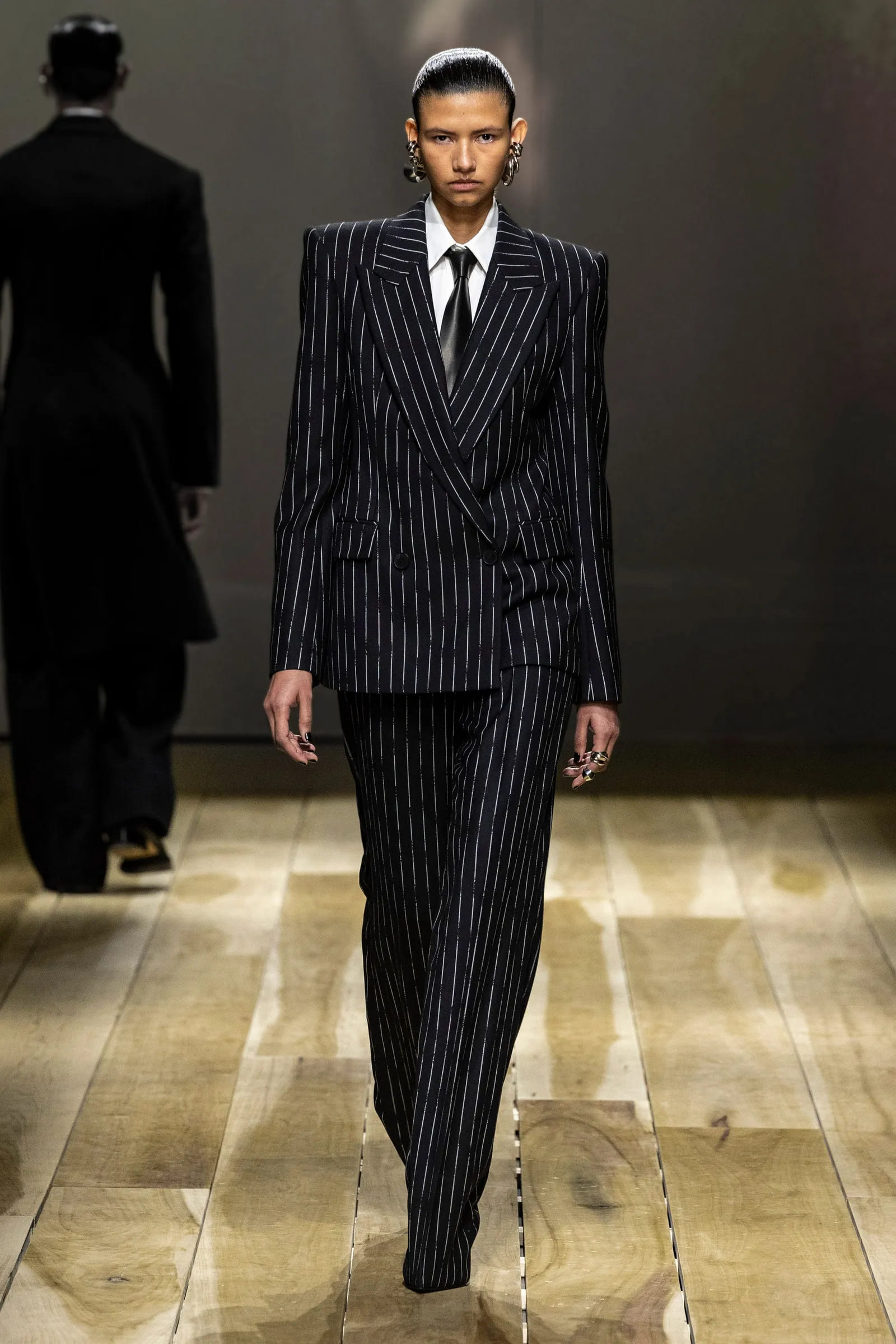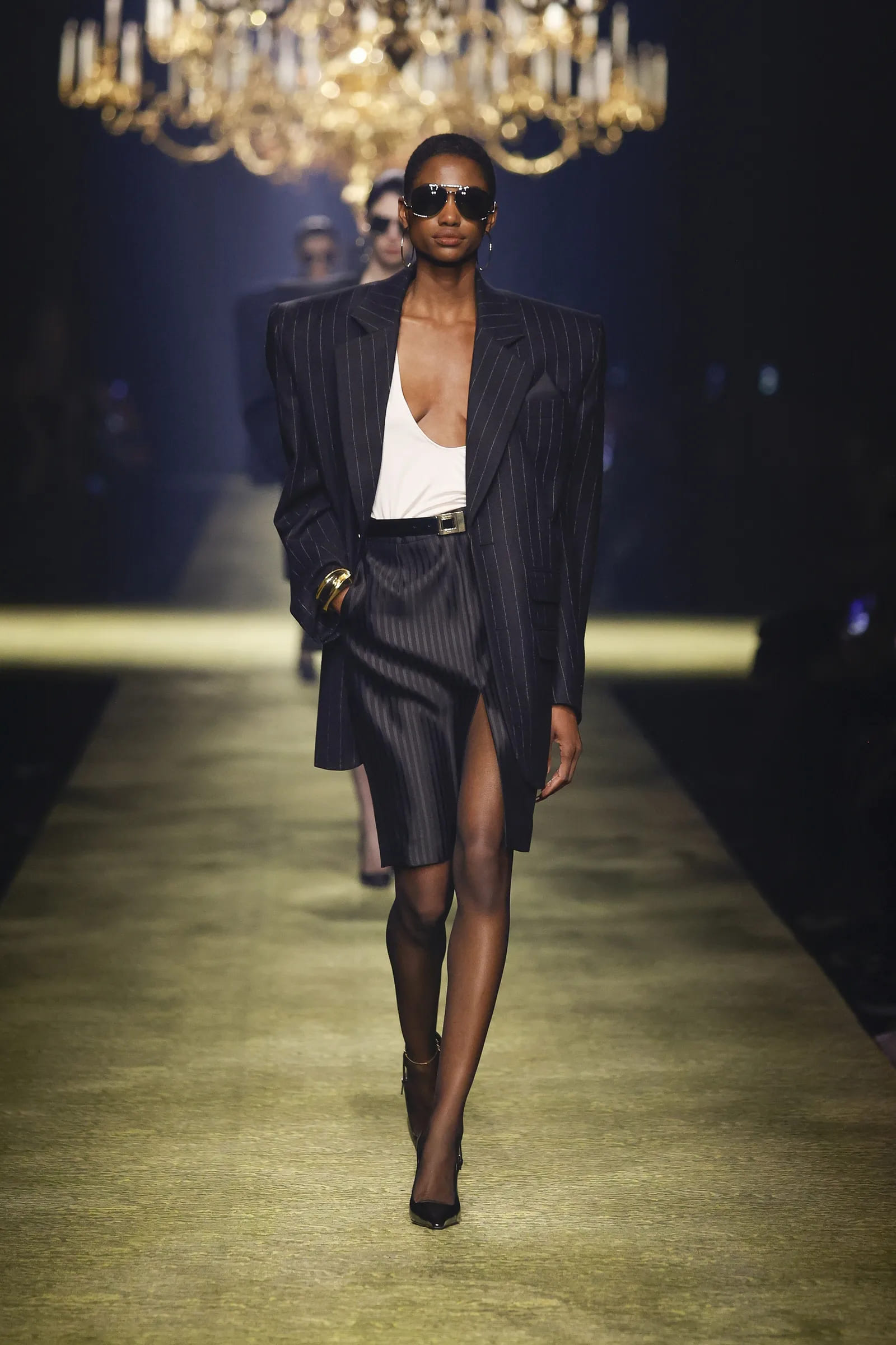 Тим часом смужки на костюмах змагаються за звання працівника місяця, з’являючись в колекціях від Saint Laurent і Louis Vuitton. Крім того, актуальним є крій блейзерів з акцентними плечима, який підкреслює ключовий осінній силует – пісочний годинник.