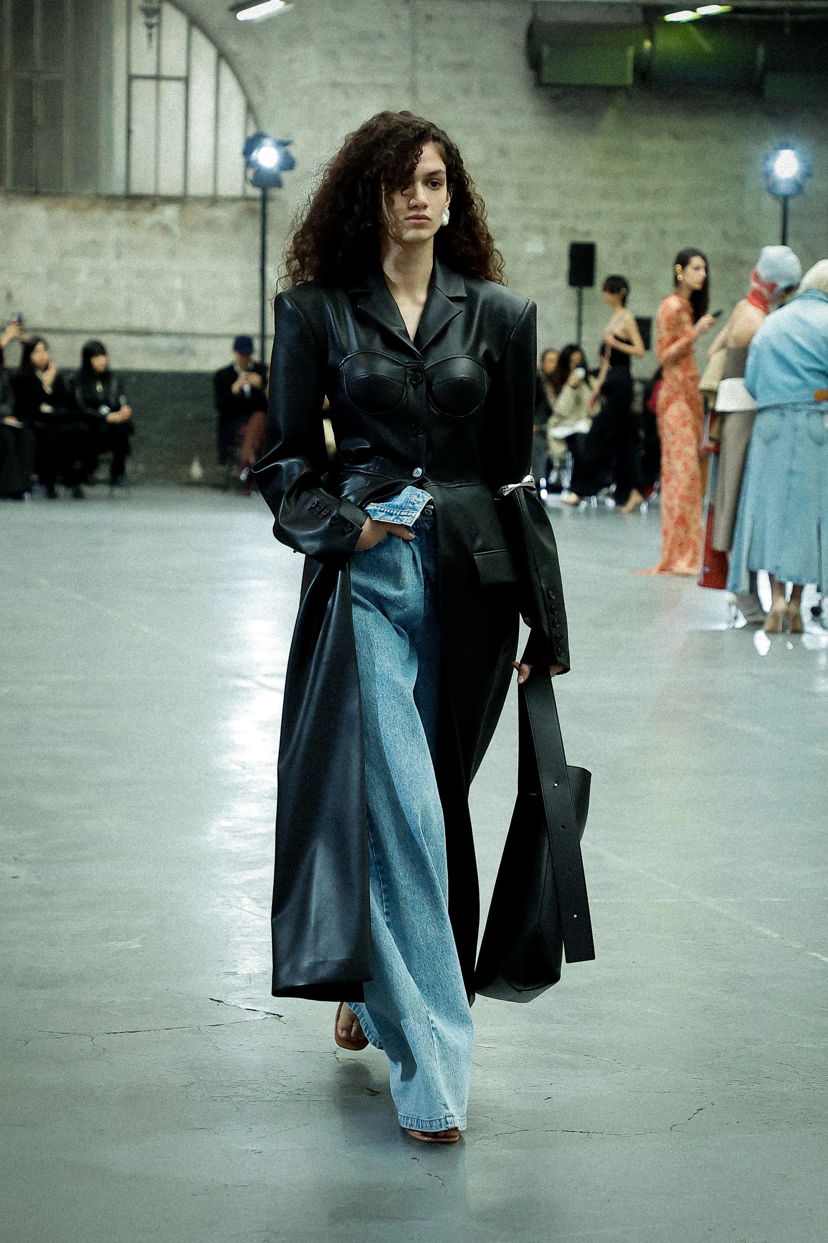 Однак така буденна розкіш має й свої особливості: блакитні джинси Bottega Veneta виготовлені з тонкої шкіри, а тренч Fendi обшитий бежевими блискітками.