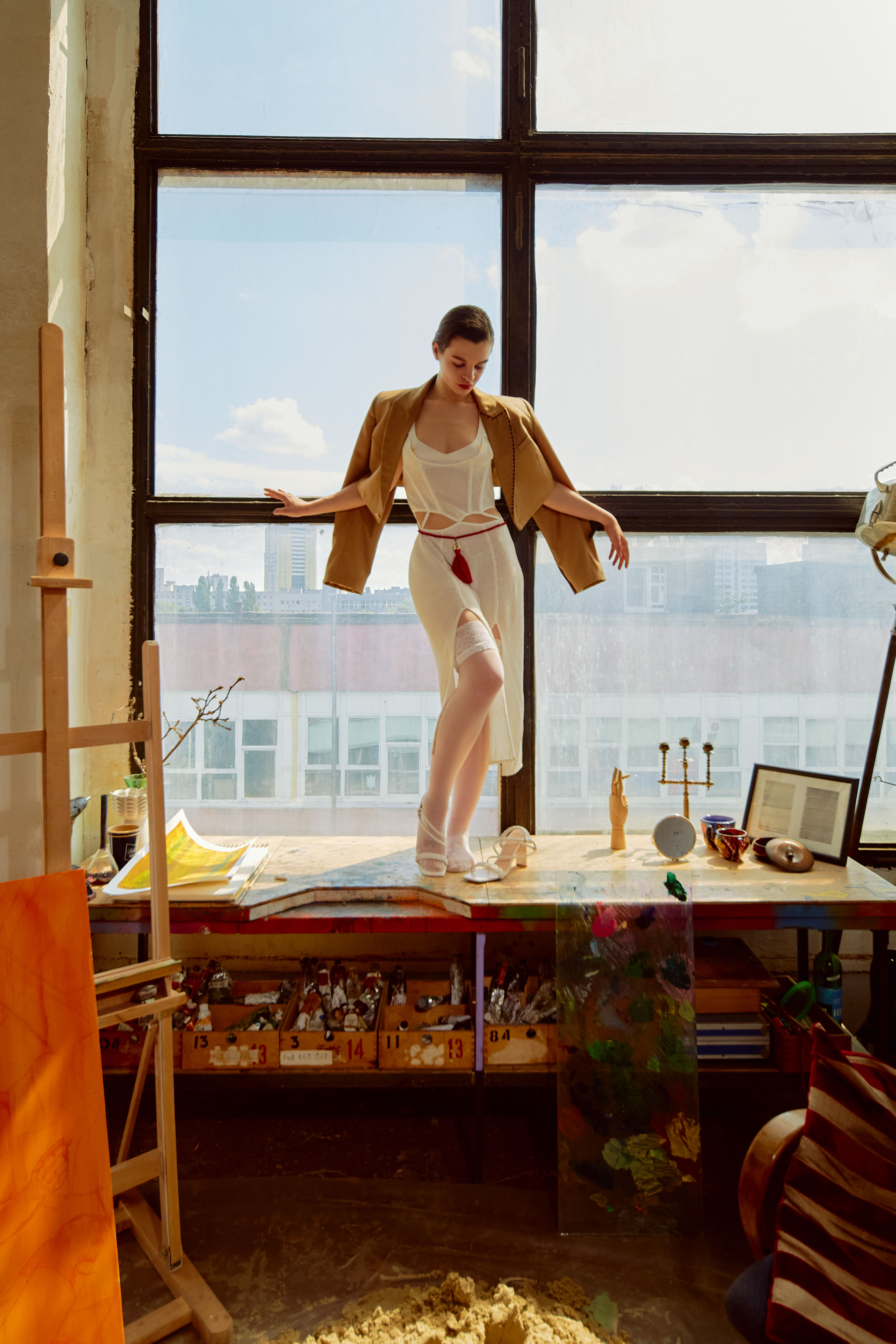 Серед капсульної колекції, що створена за принципом конструктора, особливе місце посідає в’язаний корсет, створений за технікою XIX століття. Для його пошиття Белінська адаптувала крій автентичного корсету того часу, який вона придбала на аукціоні: «Стародавні корсети мали дуже красивий перехід між талією і стегнами. При цьому вони не затискали діафрагму – це секрет, яким володіли тогочасні кравці. Саме тому жінкам було легко ходити і при цьому візуально мати дуже вузьку талію», – ділиться дизайнерка.