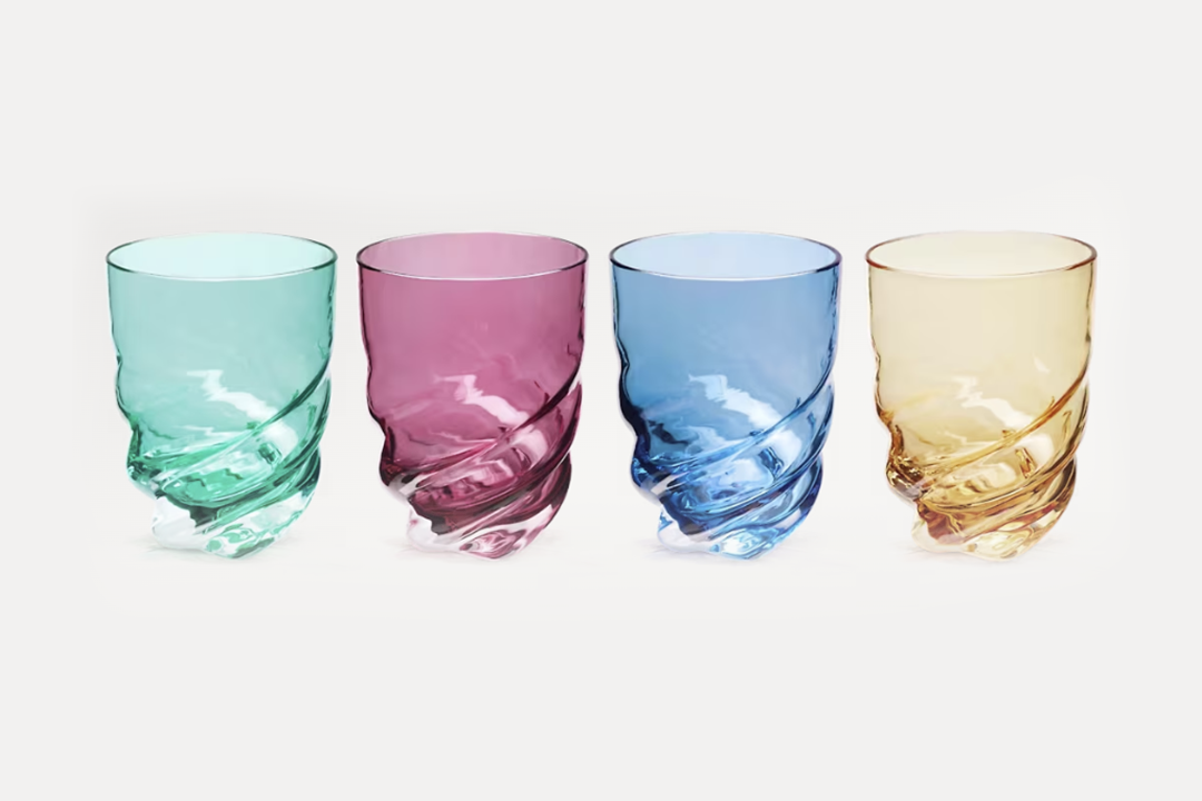 Майстерність декоративності зображена у квітці-монограмі на склянках для води Louis Vuitton. Посуд зроблений також на острові Мурано, звідки походить венеціанська скляна справа. Склянки представлені в 5 колірних варіаціях по чотири айтеми, а також по два — у монохромних наборах.
