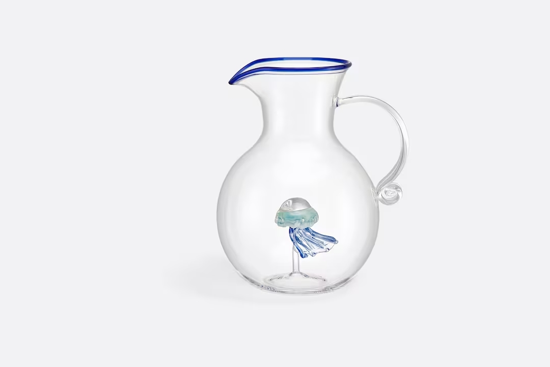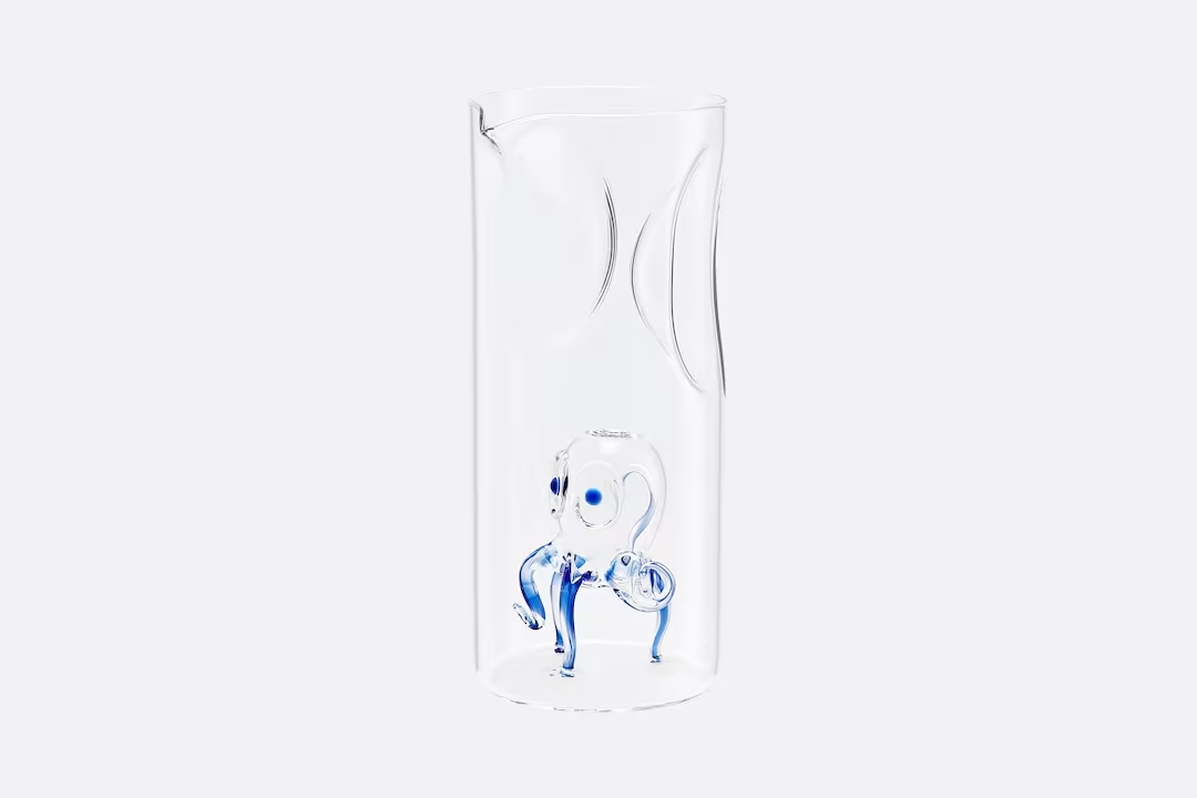 Крістіан Діор захоплювався півднем Франції — краєвидами, кольорами й світлом. Колекція Méditerranée віддає данину засновнику бренду та досліджує красу водної поверхні, зокрема ці коди проілюстровані в карафах і стаканах з вбудованим всередину блакитним восьминогом. Створені в Італії, вони були вручну видуті з прозорого скла.