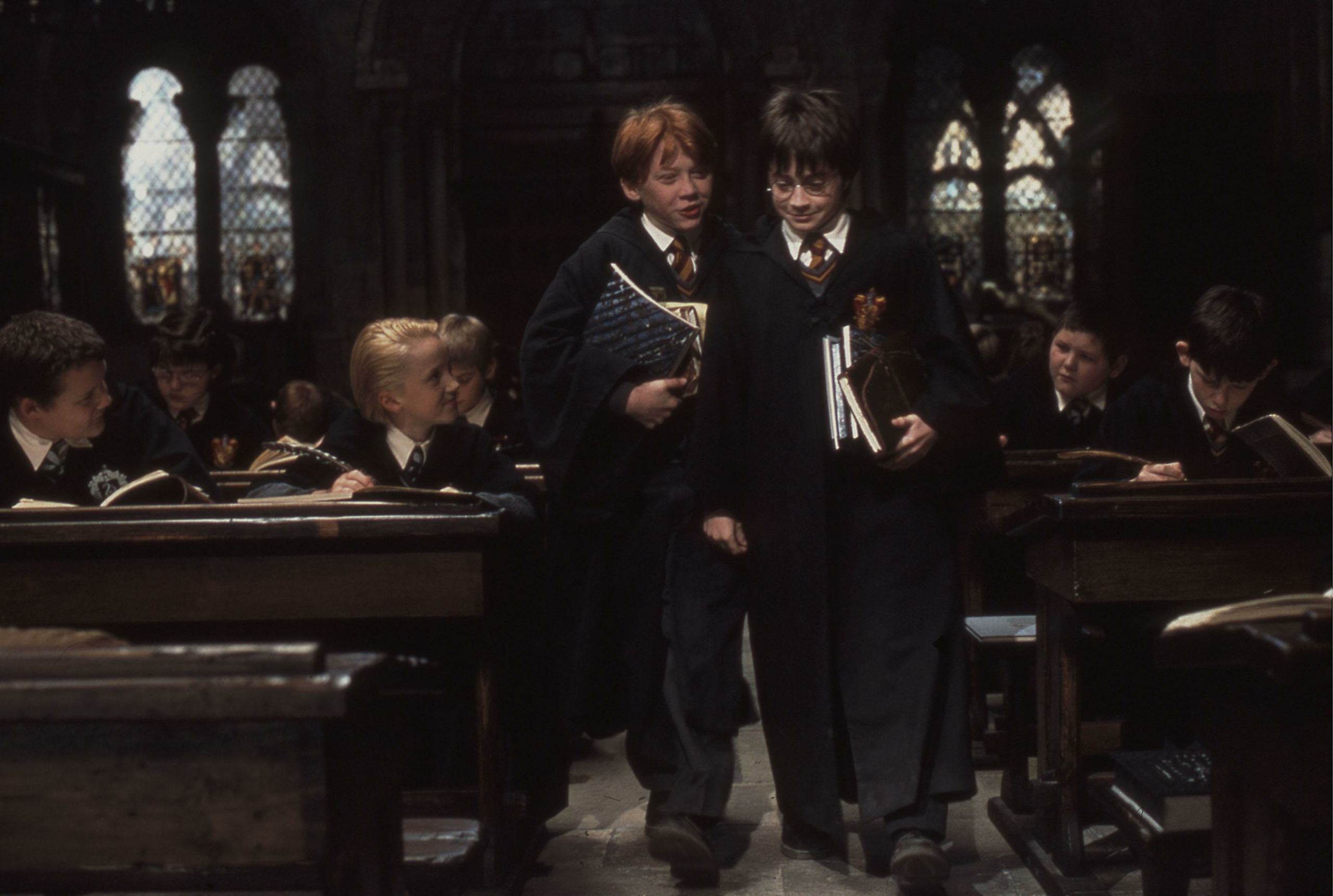 Осінь – це той час, коли варто починати передивлятися улюблені й такі ностальгічні серії фільмів про Гаррі Поттера. Перший фільм «Гаррі Поттер і філософський камінь» 2001 року є титульним і найбільш відчуттєво теплим, знайомить глядачів із найвідомішим світом магії неначе вперше.