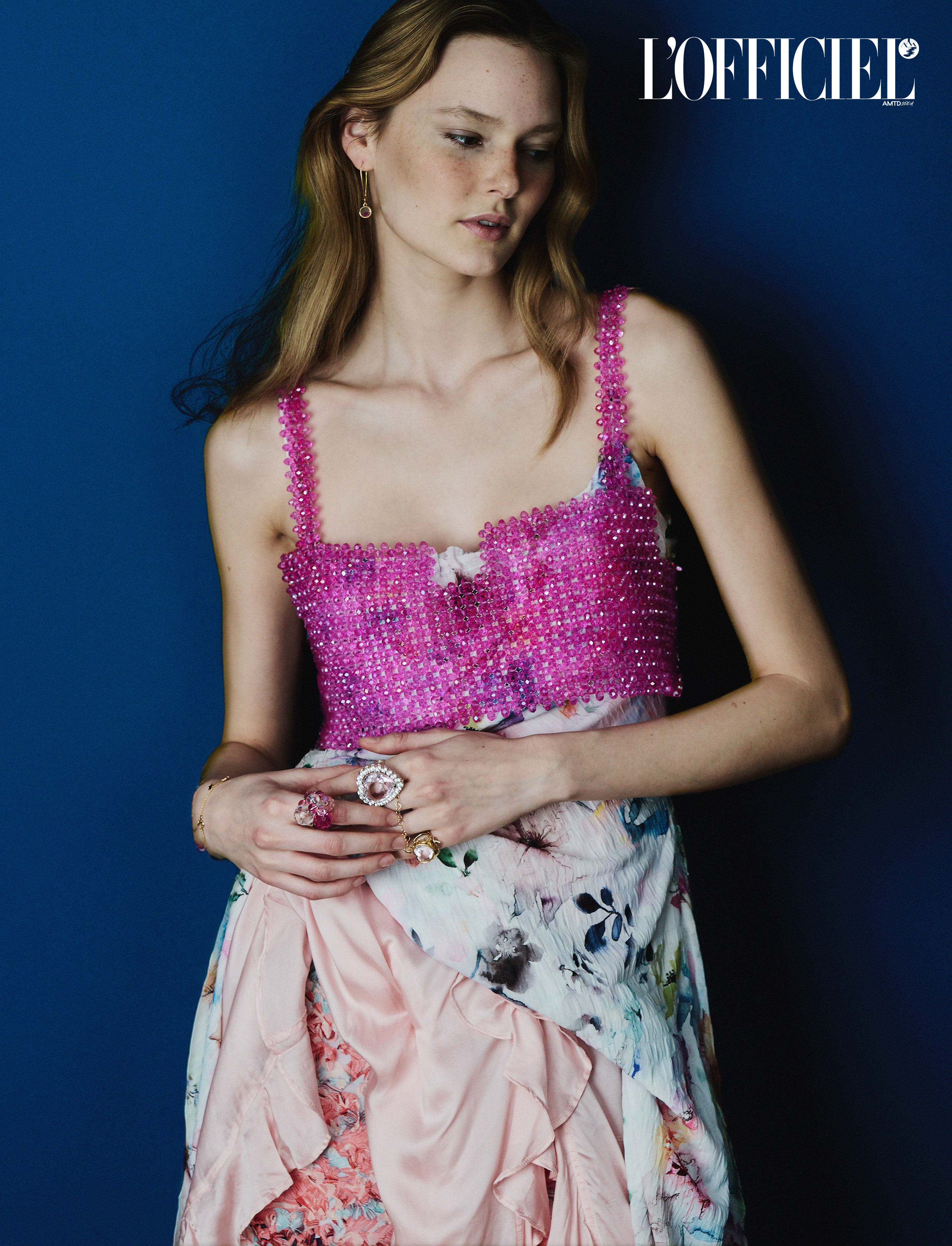 Pink Top: FANSY BY VIRGINIA SAIACH @fansyxvs. Ring with heart: PB-design @juwelier_berends. Pink Ring: GAUDESS @gaudess. Earrings and Bracelet: UMBELLINA @Umbellina