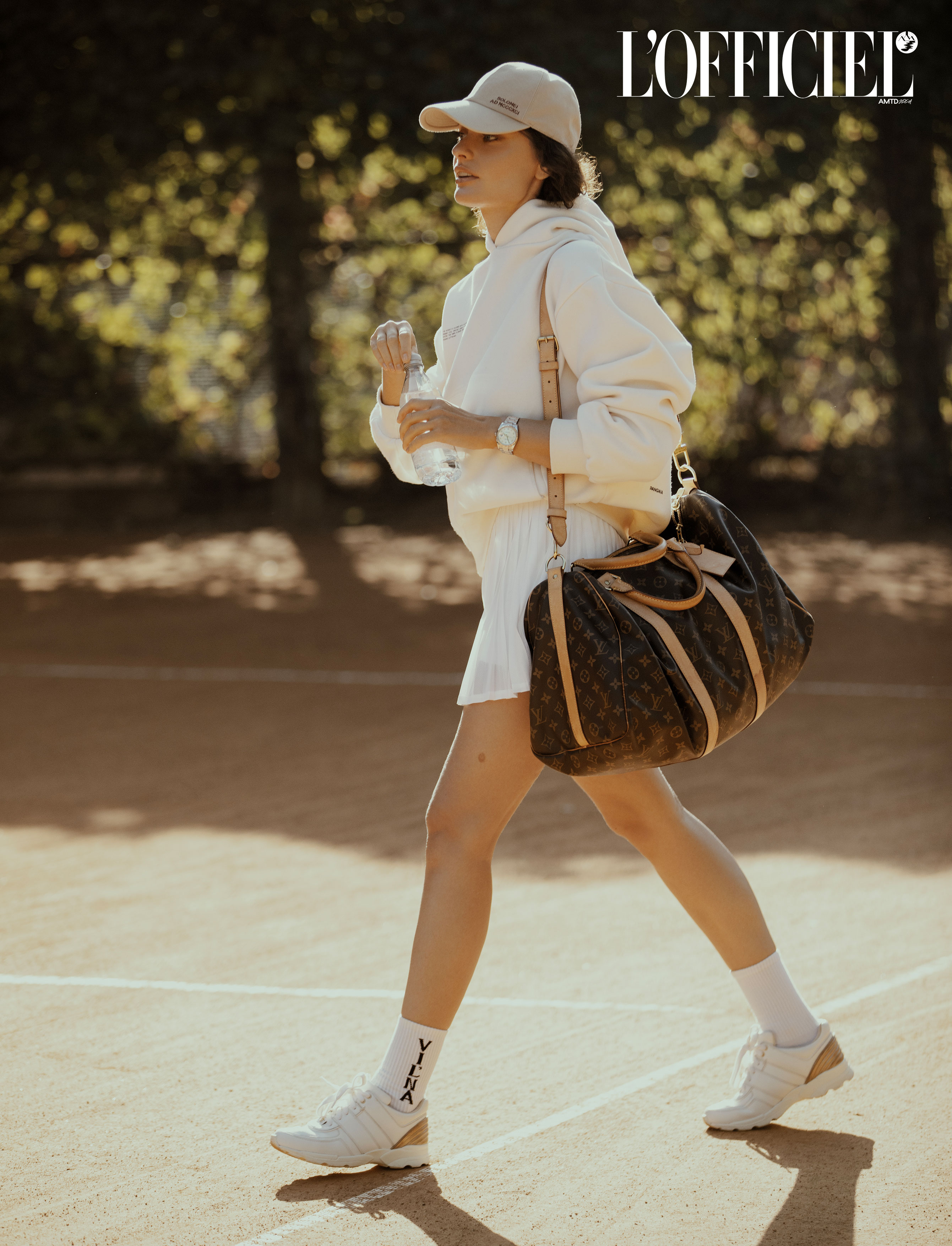 На Віолі: кепка, Brunello Cucinelli; худі, Represent; спідниця та шкарпетки, VIL’NA clothing; сумка, Louis Vuitton; кросівки, Chanel; годинник, Rolex