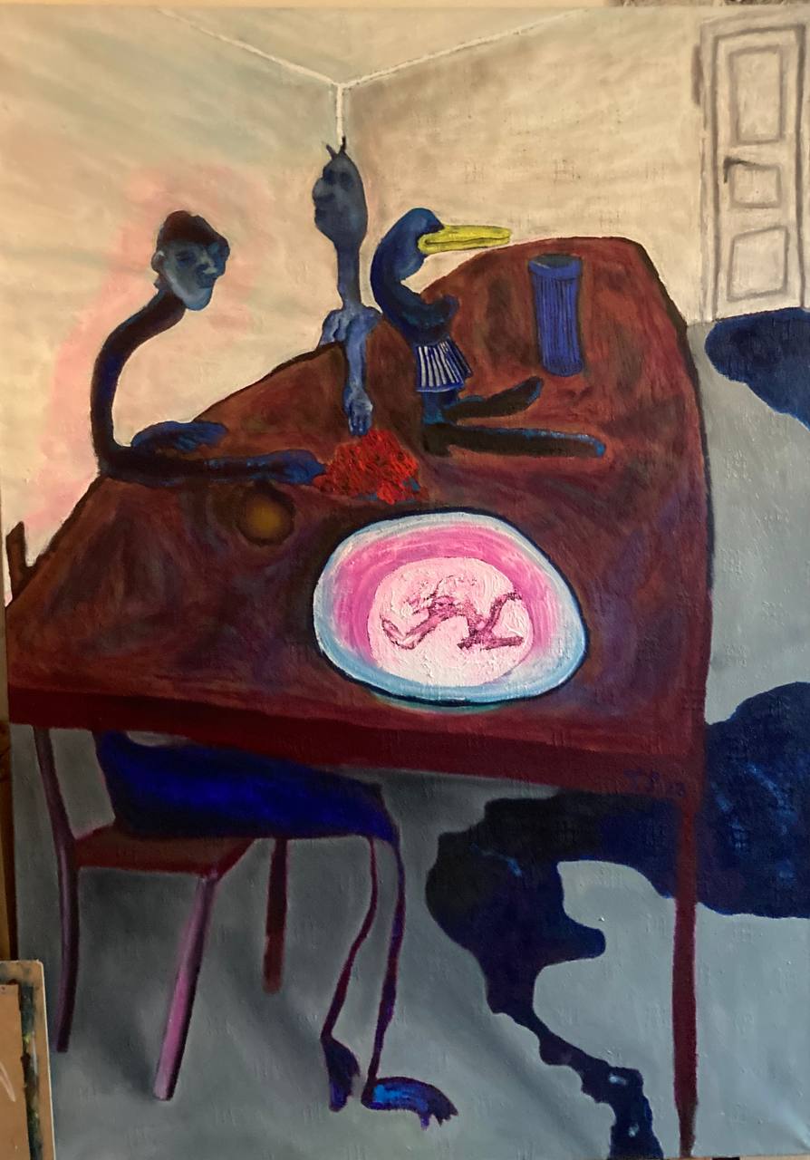 Порцелянові скульптури Юлії Беляєвої передають колективну пам’ять через історичних та міфологічних персонажів. Скульптура представляє тіло художниці, натхненне образами Саломеї, Капітолійської вовчиці та бога сну, Гіпноса. Фарфор підкреслює крихкість і вразливість людського життя та пам'яті.