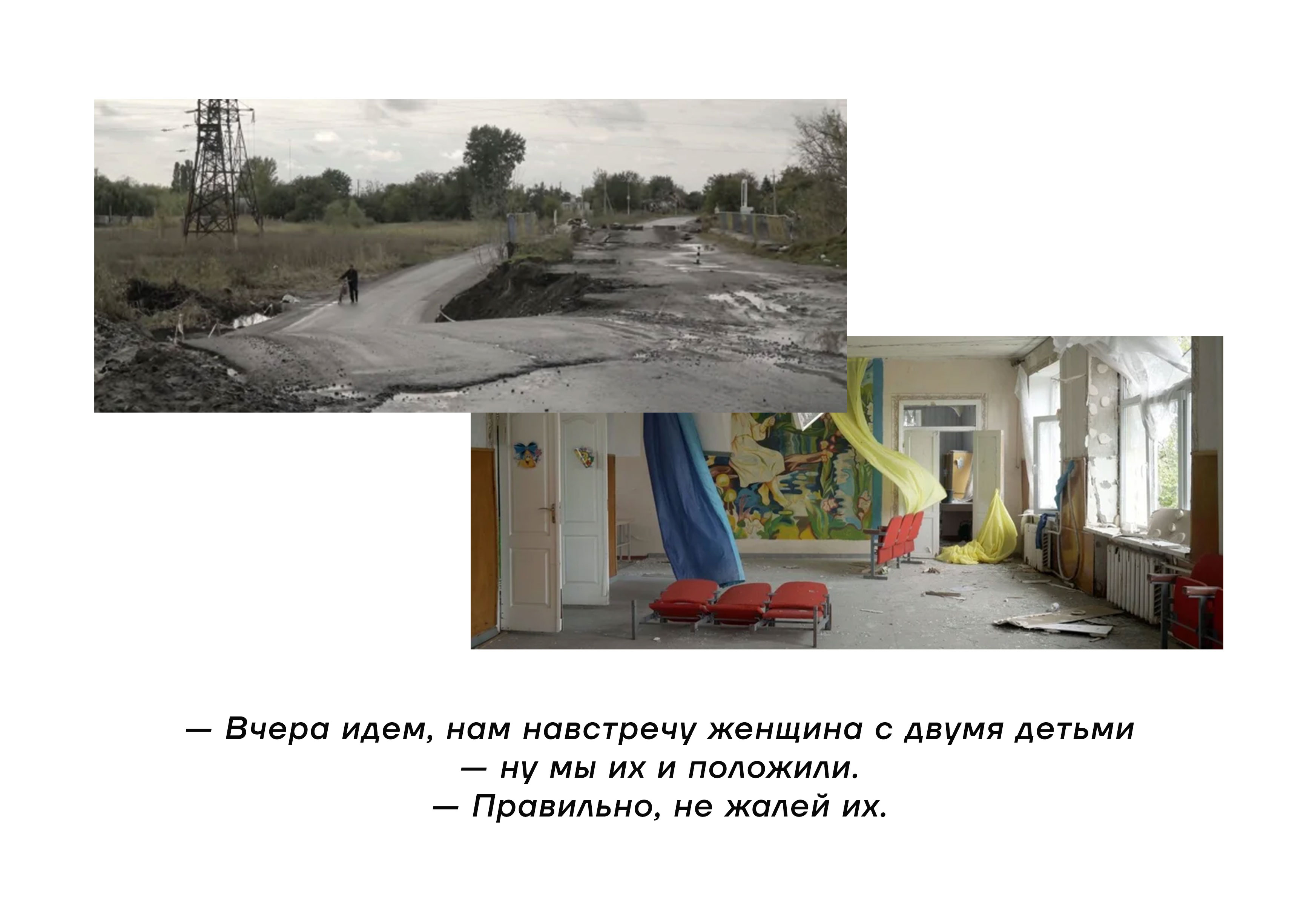 «Це історія подорожі й дегуманізації російського окупанта від моменту вторгнення до смерті, від переповнення героїчними ілюзіями до повного відчаю та божевілля. Це фільм про тоталітарну російську машину, насилля та безкарність як одні з її фундаментальних елементів», — розповідає режисерка Оксана Карпович.