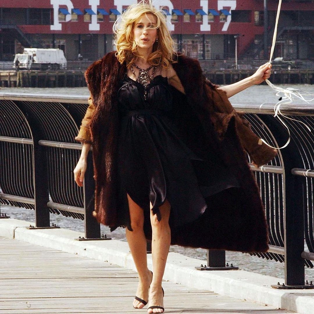 Навіть якщо ви не дивилися «Секс і місто», цей образ із культового інтро знайомий майже кожному. Керрі Бредшоу іде вулицями Манхеттену, коли її збризкує дощовою водою автобус з рекламою її власної ж колонки. Сара Джессіка Паркер майже не одягнула ту саму білу cпідницю-пачку, яку стилістка Патриція Філд знайшла в баку вартістю 5 доларів. Так, одна з версій культового інтро демонструє Керрі Бредшоу, яка просто спотикається перед автобусом, у блакитній сукні.