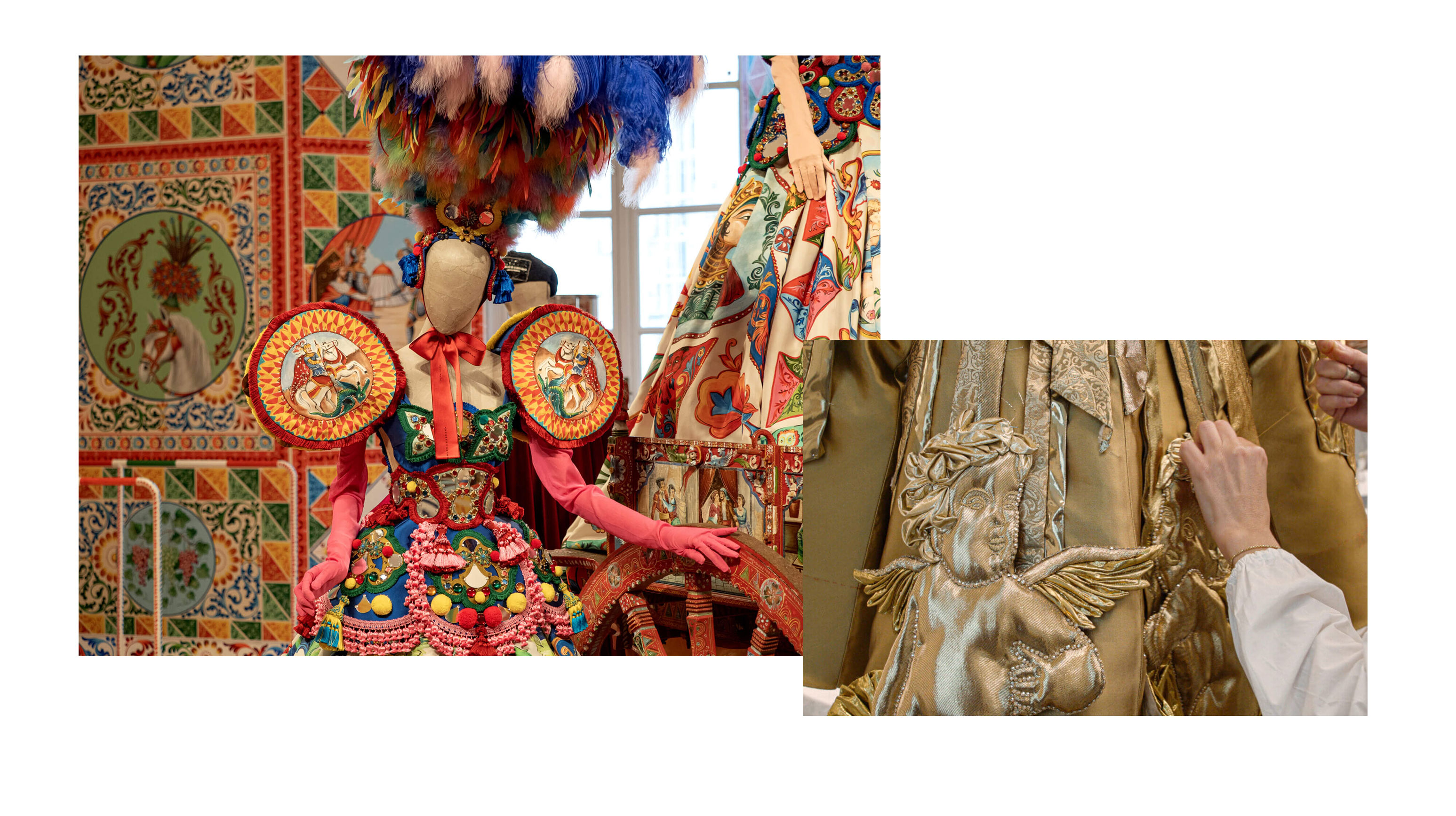 Зліва направо: Alta Moda Siracusa осінь-зима 2022, на виставці «Від серця до рук: Dolce & Gabbana»