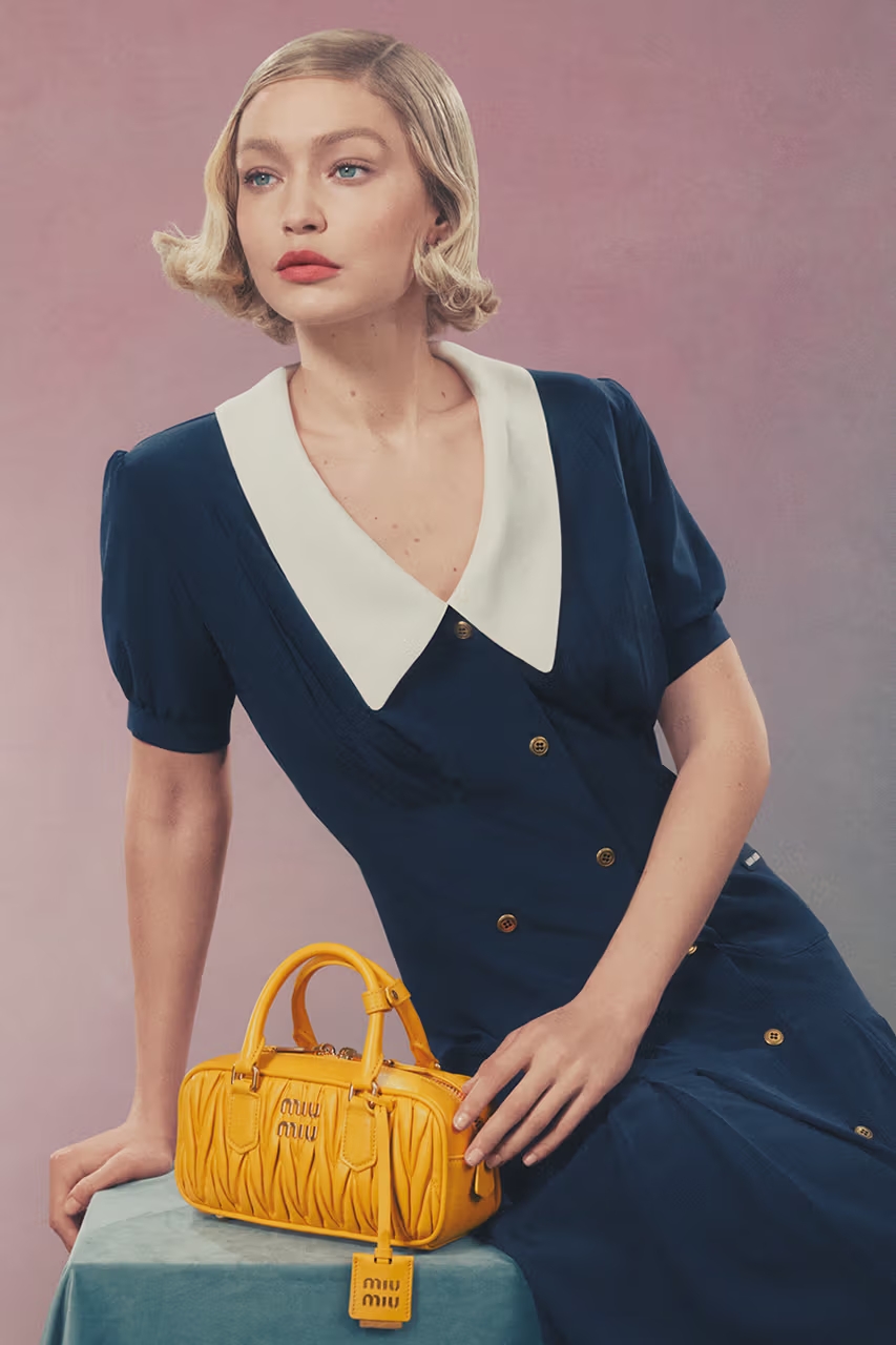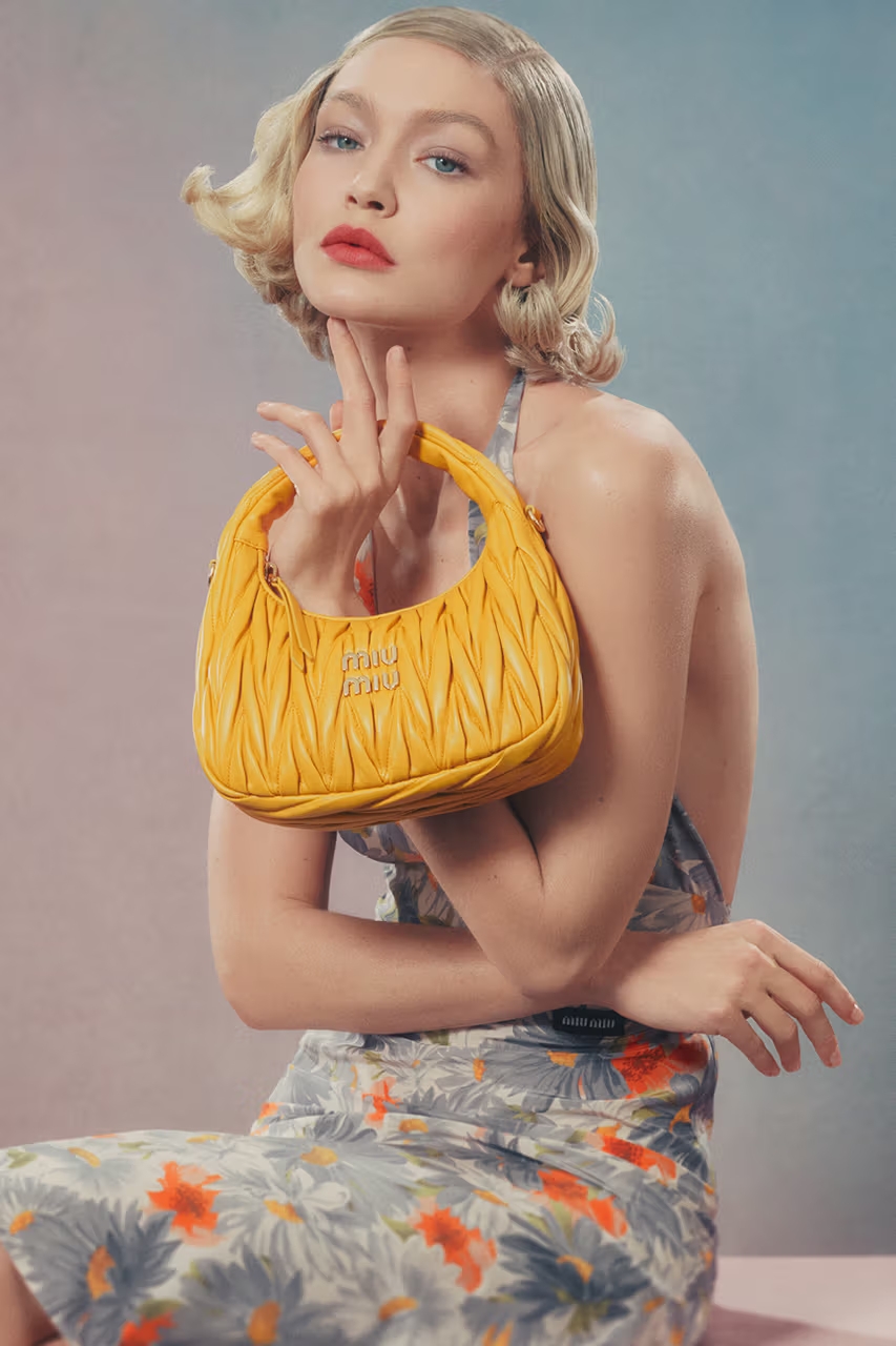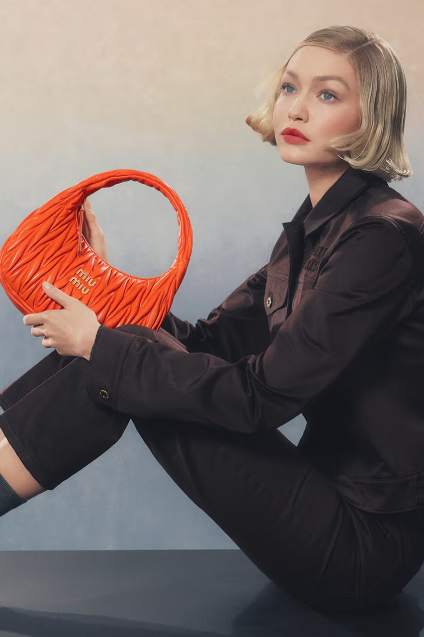 Miu Miu представили нову рекламну кампанію за участі Джиджи Гадід. Фото авторства відомого фотографа Стівена Мезйела присвячені виходу оновленої палітри кольорів класичних сумок Wander та Arcadie. Кадри кампанії нагадують роботи новаторки та активістки за права жінок Євонд Міддлтон, творчість якої й стала натхненням для Miu Miu.