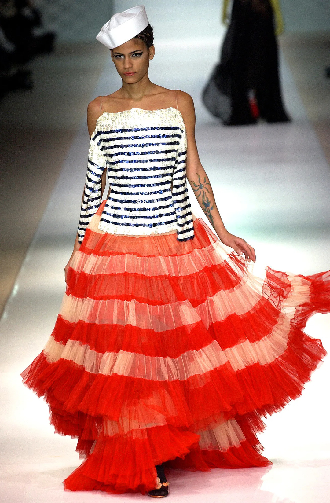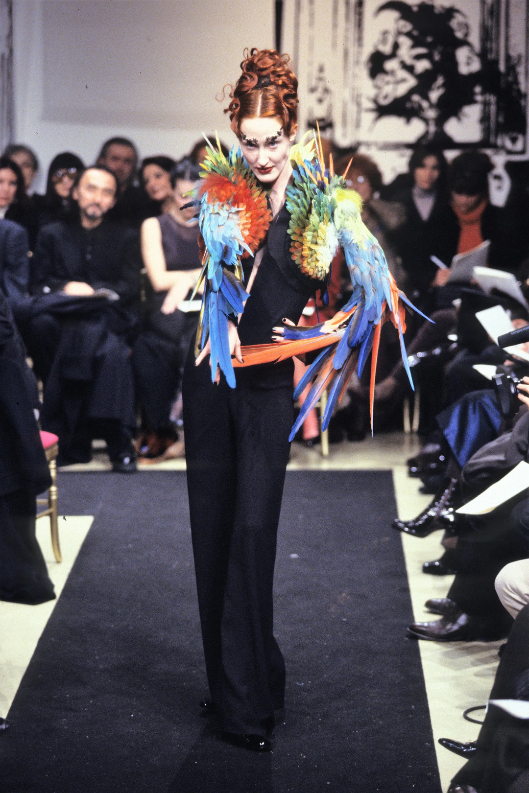 У колекції Haute Couture весна-літо 1997 Жан-Поль Готьє, дизайни якого розмивають лінію між фемінністю й маскулінністю, представив високу моду одразу для чоловіків і жінок. І ті, і ті, ефектно носили приталені білі костюми з тонкою білою смужкою з акцентом на талії й численні лелітки на обтислих топах. Одним із хайлайтів колекції виступив ансамбль з барвистим пір'ям папуги ари на чорному жакеті — ще один надзвичайний вияв фантазії дизайнера.