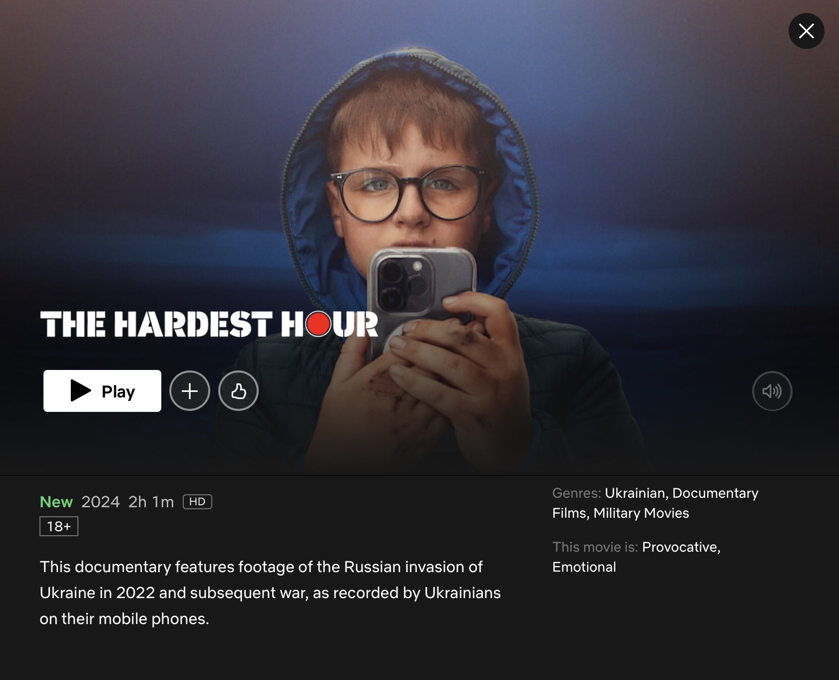 1 травня на стримінговій платформі Netflix відбулася прем’єра документального фільму «Довга доба». Стрічка, створена Аланом Бадоєвим і «1+1 Україна», це 200 годин хроніки виживання, опору й життя українців під час війни.