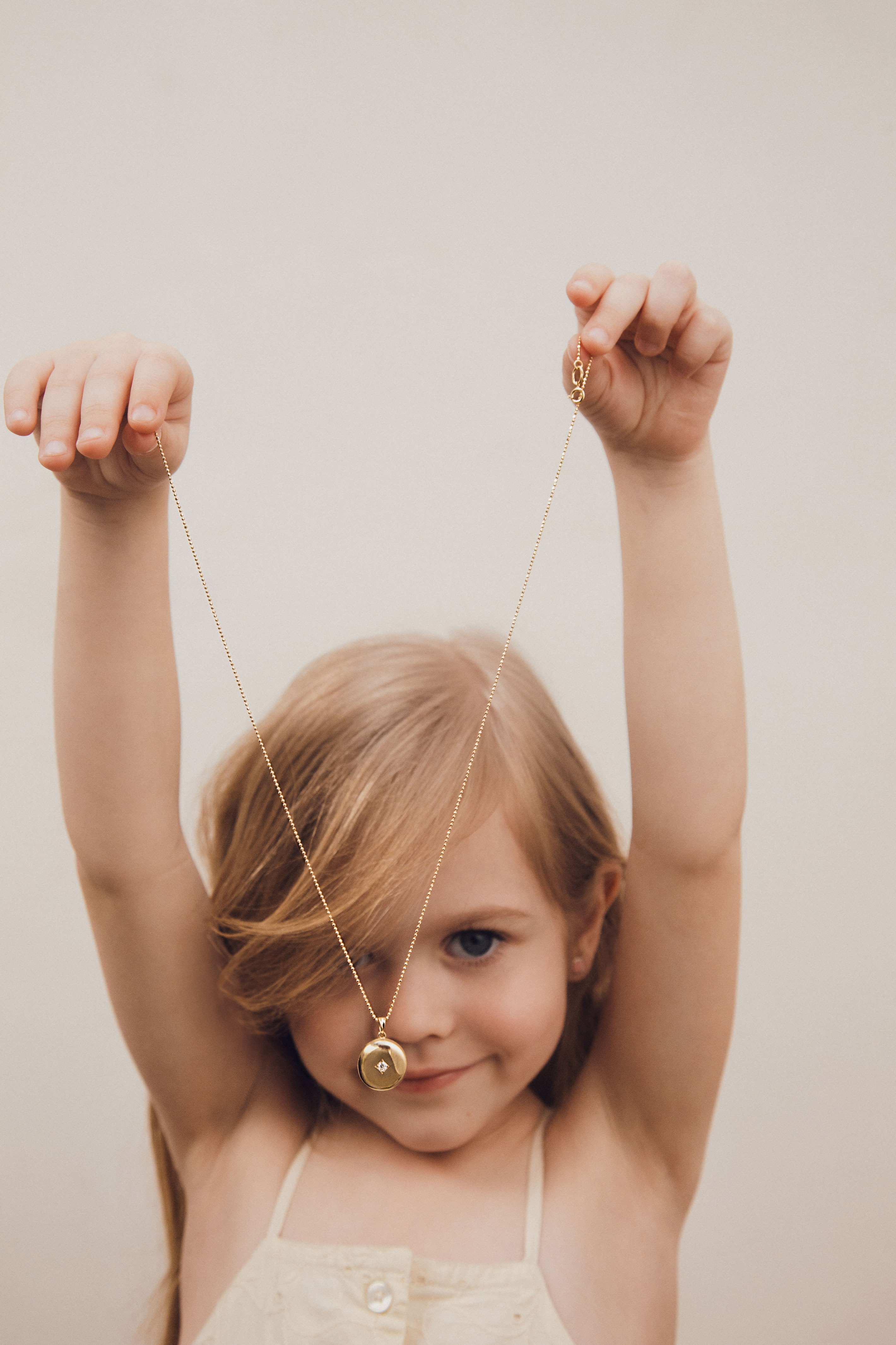Капсула складається з трьох кулонів лаконічної круглої форми, виконаних у жовтому золоті. У серці кожного кулону — діамант як символ найцінніших почуттів. Аби зберегти ці спогади для двох, до кожного кулону ви можете додати особливе гравіювання. Таким чином ці моменти завжди будуть біля серця матері.