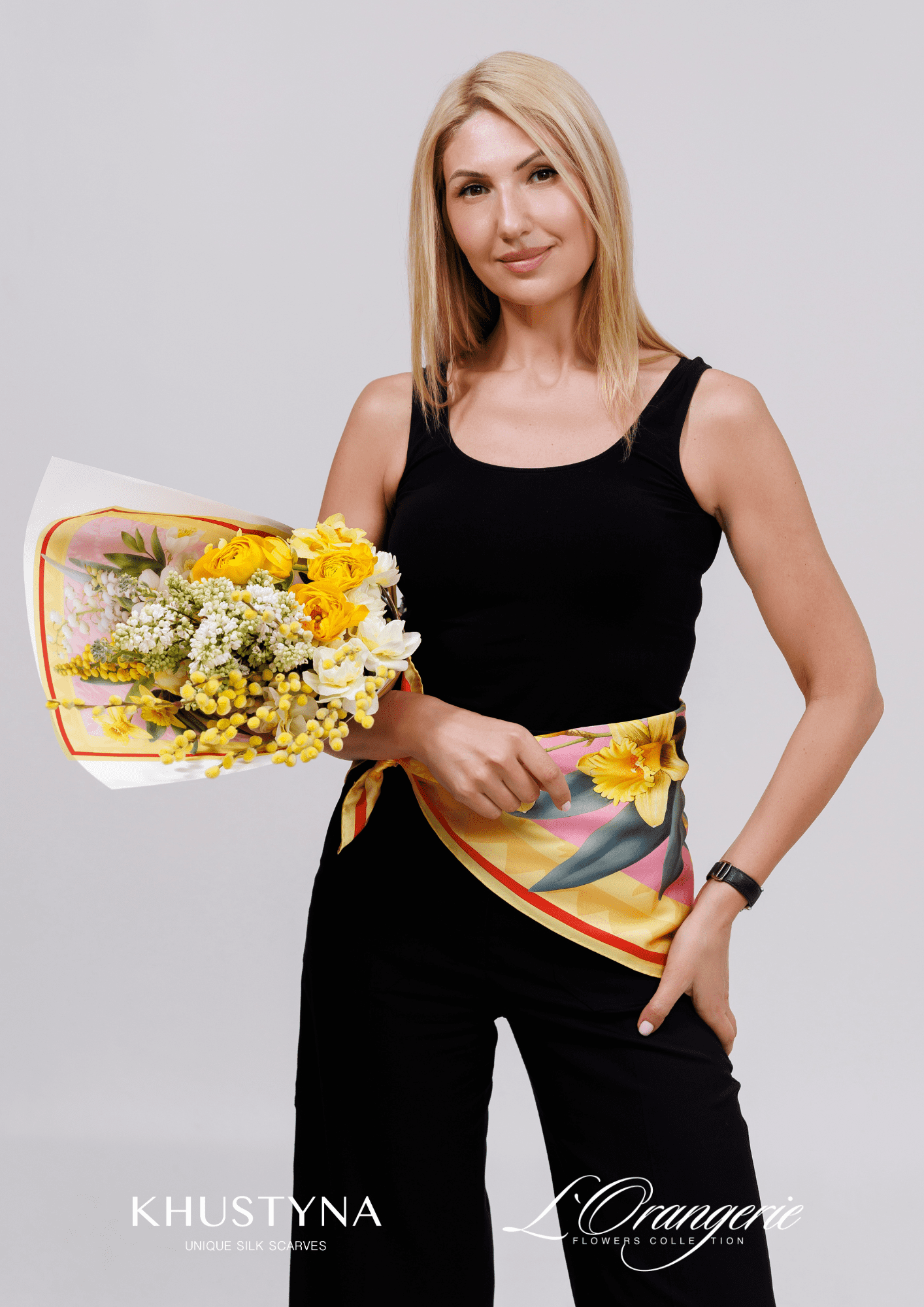 «Колекція L'Orangerie - це як шовкова оранжерея, де квіти цвітуть у будь-яку пору року. У ній ми зібрали улюблені квіти, які відомі кожному ще з дитинства, та нагадують про найтепліші моменти нашого життя. Кожна хустина цієї колекції - це маленький витвір мистецтва, яким ми хочемо прикрасити будні кожної жінки». - ділиться Анастасія Гембіцька, артдиректорка бренду KHUSTYNA.