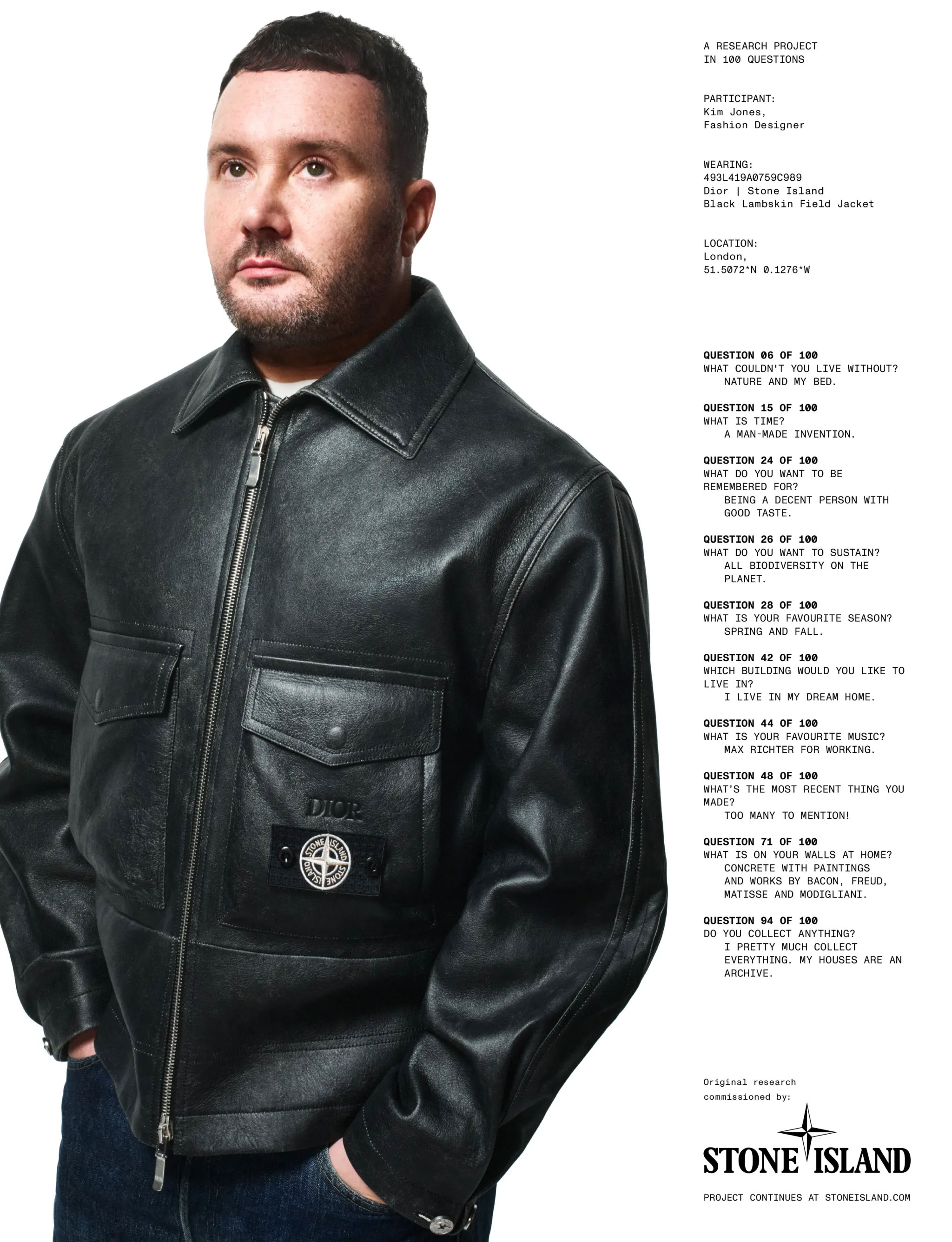 «Stone Island — це те, що я ношу з підліткового віку. Тоді я міг дозволити собі придбати тільки одну річ. Я пам'ятаю, як відкладав на нього гроші, і його було так важко дістати. Це був просто світшот, але з нашивкою. Мені було, мабуть, близько 19-ти років», — розповідає Кім Джонс, який натякає на культові «патчі» бренду, що здобули популярність в 80-90-х роках, особливо, серед фанатів футболу та скейтбордингу.