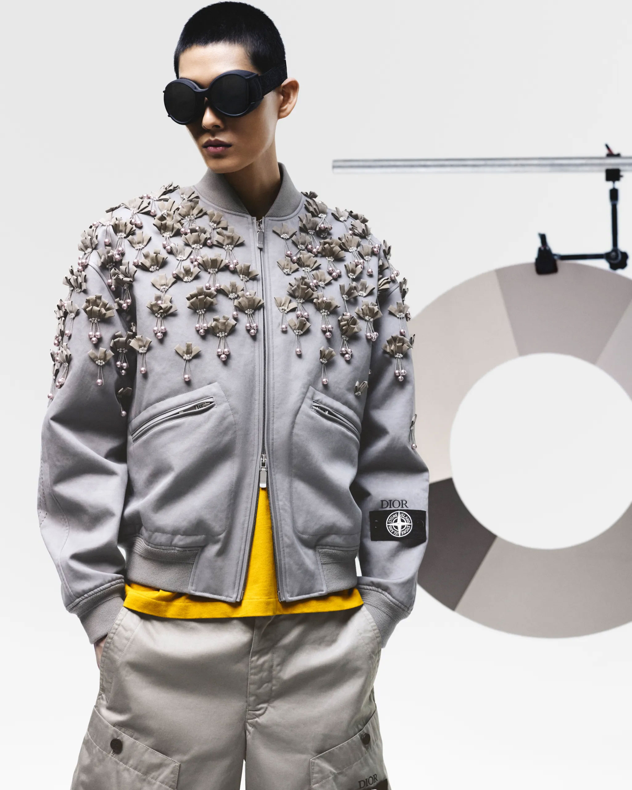 До колаборації Dior х Stone Island ввійшли й архівні моделі брендів. Так, спортивна куртка Stone Island, вперше представлена в 1988 році, була випущена в шовку зі шкіряною кишенею, на котрій поєднуються компас та квіти. Інші елементи колекції — бомбери, світшоти, сорочки, светри тощо — прикрашаються 3D-квітами, які в 2013 році для Dior розробив Раф Сімонс.
