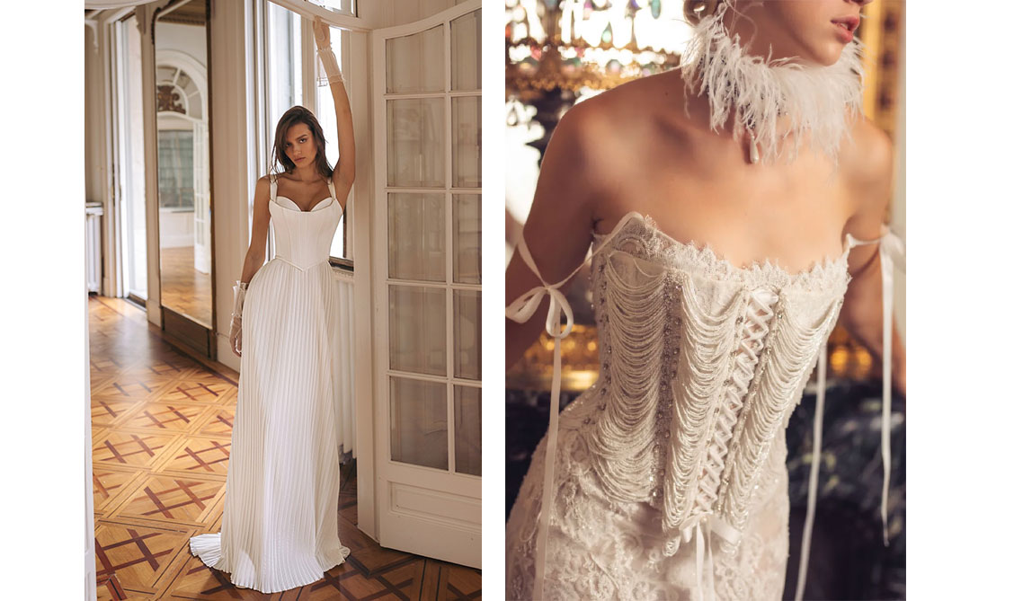 Корсети продовжують своє панування як на подіумах, так і в образах знаменитостей, і весільні тенденції — також не виняток. Великій популярності цього елементу вбрання також посприяла історична драма «Бріджертони» з вишуканими образами, натхненними епохою Регентства. Якщо ви плануєте інтегрувати у свій весільний ансамбль корсет, що підкреслює красу тілесного силуету, колекції для наречених пропонують модерні й частково «королівські» інтерпретації тренду.