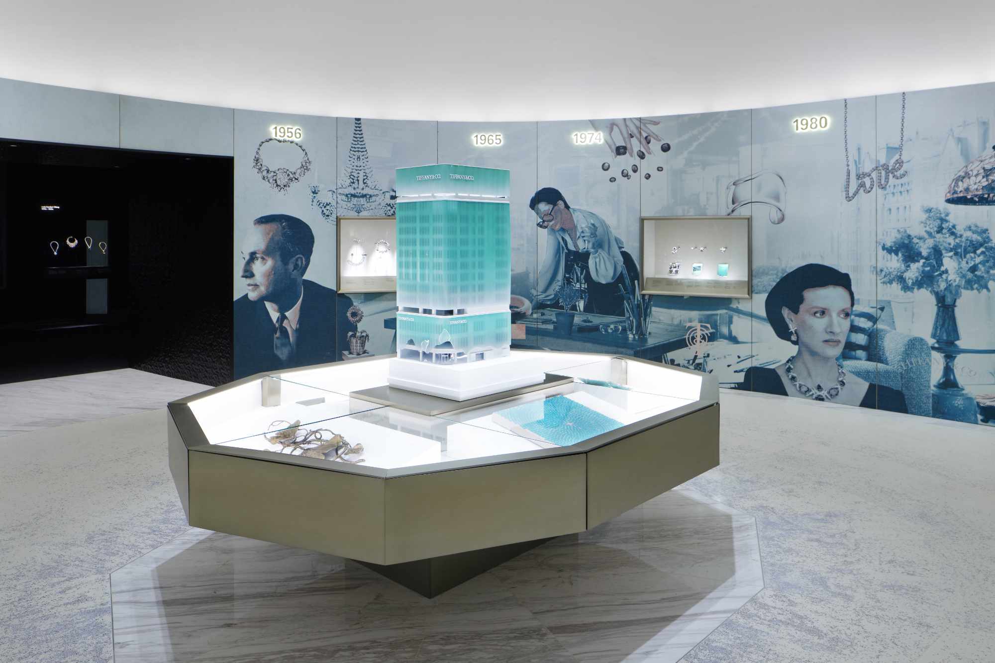 Зв’язок Tiffany & Co. з кінематографом висвітлюється в окремому залі, який очолюють експонати з фільму «Сніданок у Тіффані». Тут ж представлені й архівні образи Одрі Хепберн, створені Givenchy. В інших просторах Дім демонструє спадщину в виготовлені ювелірних предметів для монарших родин, нагород та унікального спортивного спорядження, а зала In Love With Japan підкреслює тісні стосунки Tiffany & Co. з Японією.
