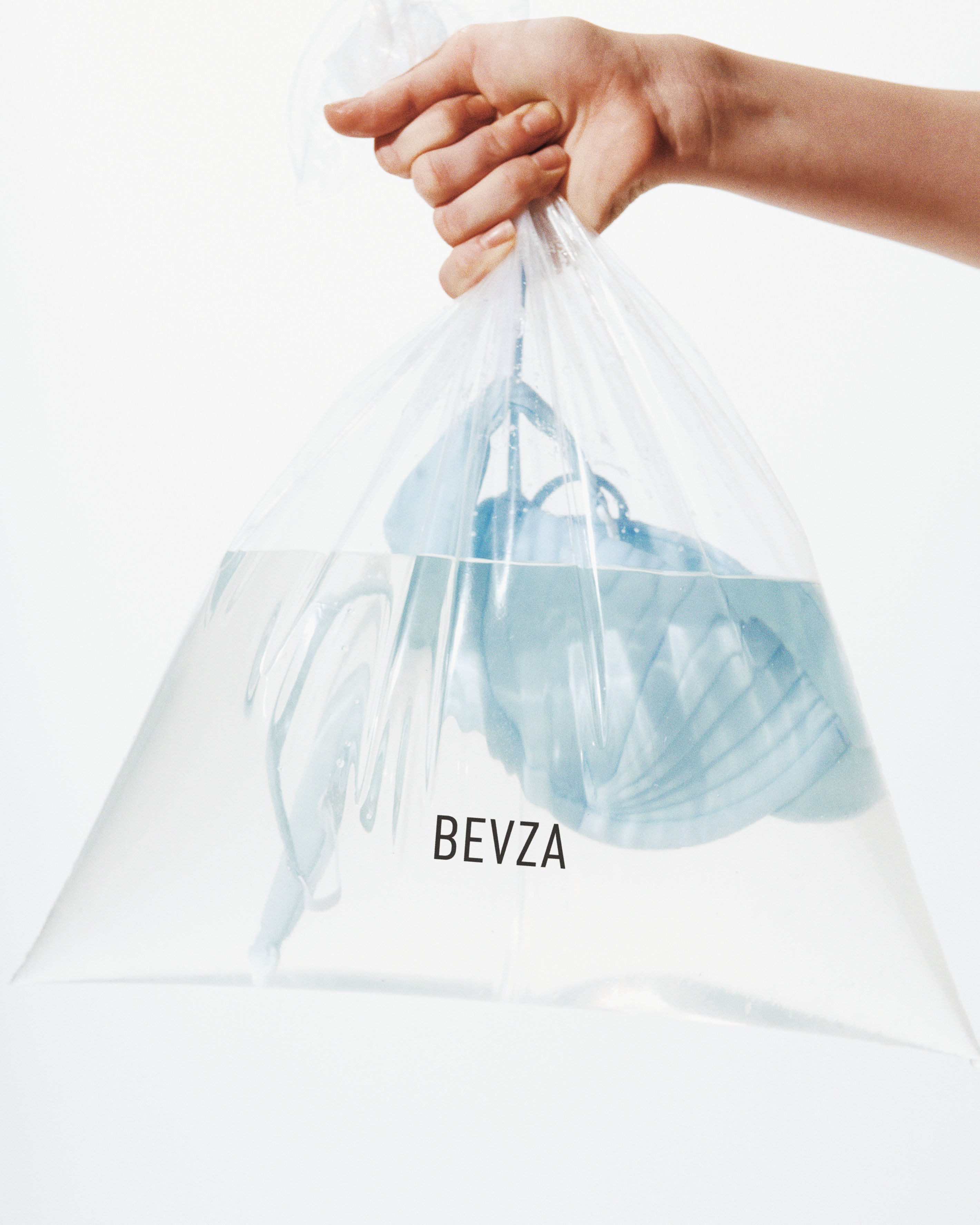 Лінійка представлена чотирма моделями купальників у чотирьох різних кольорах. Ці неокласичні, незмінні купальники можна легко додати до літнього гардеробу. Усі речі виготовлені з перероблених тканин. Купальники ексклюзивно доступні на bevza.com.