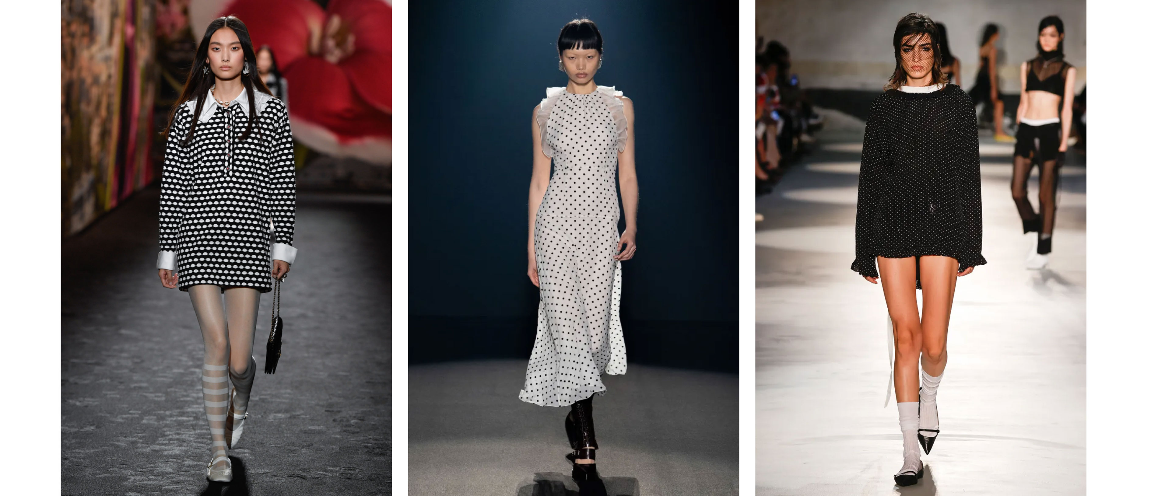 Сукні з гороховим принтом неодмінно відсилають до ретростилю, а також його культових прихильниць, як-от Мерилін Монро, Джулії Робертс та принцеси Діани. До їхньої фірмової грайливості дизайнери звернулися і в цьому сезоні, а втім, у сучасному прочитанні. Один з улюблених брендів Кейт Міддлтон Alessandra Rich зробив ставку на елегантність, яку збалансовувало високе лакове взуття. Водночас у Chanel і N°21 представили мінісукні в горох, які своєю чергою випромінювали нотки стилю преппі й спокусливості.