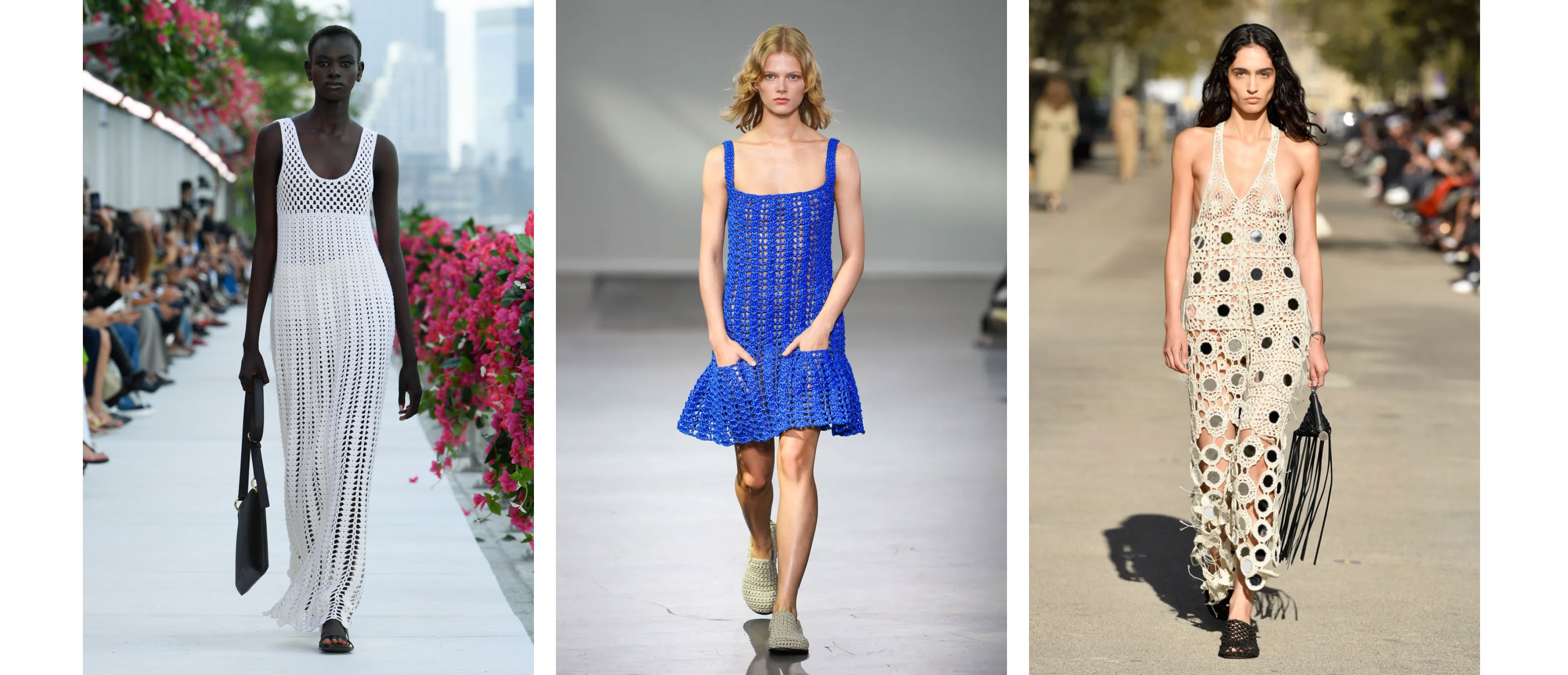 В’язаний гачком одяг залишається літнім лідером уже кілька сезонів, адже саме він якнайкраще навіює розслаблений, пляжний настрій. До адептів кроше вже доєдналися JW Anderson із сукнею в королівському синьому відтінку, а також Michael Kors, що нагадують про те, якою романтичною може бути в’язка. Натомість у Stella McCartney ілюструють: в’язана сукня до того ж стане ефектним вибором, що приковує погляд, якщо додати до неї, наприклад, металевий декор.