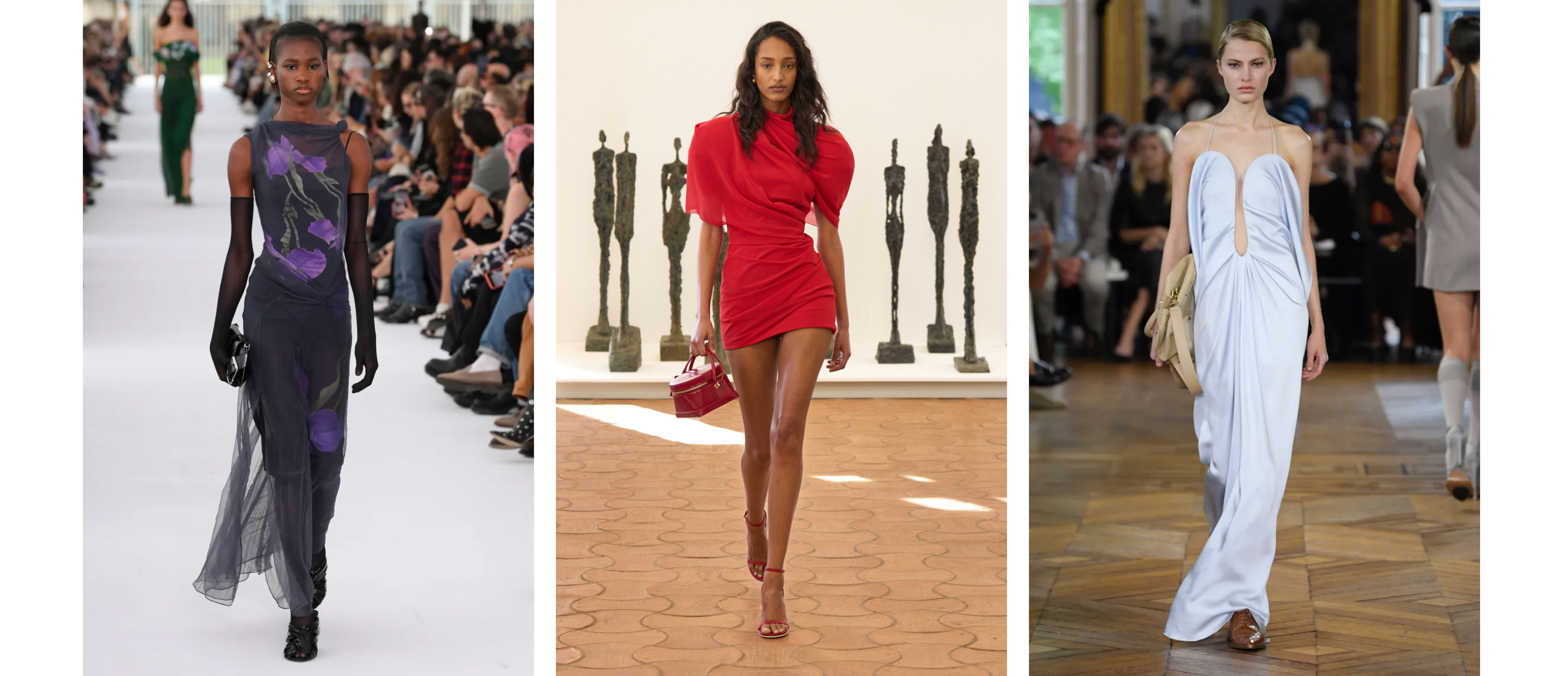 Зліва направо: Givenchy весна-літо 2024, Jacquemus весна-літо 2024, Victoria Beckham весна-літо 2024